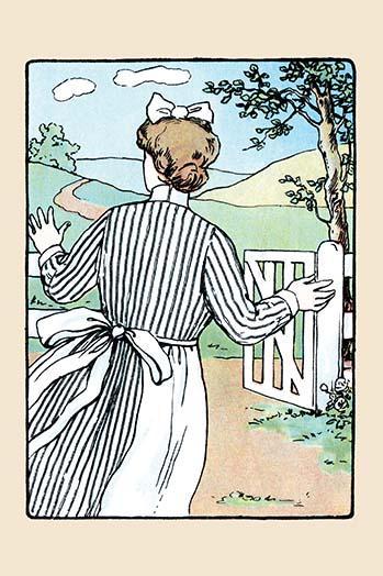 20inch x 30inch Poster The nanny went looking for the baby girl and the puppies. An illustration from a series of children's books which came free with the Public Ledger newspaper. - There is a border around the image. Image size is correct.