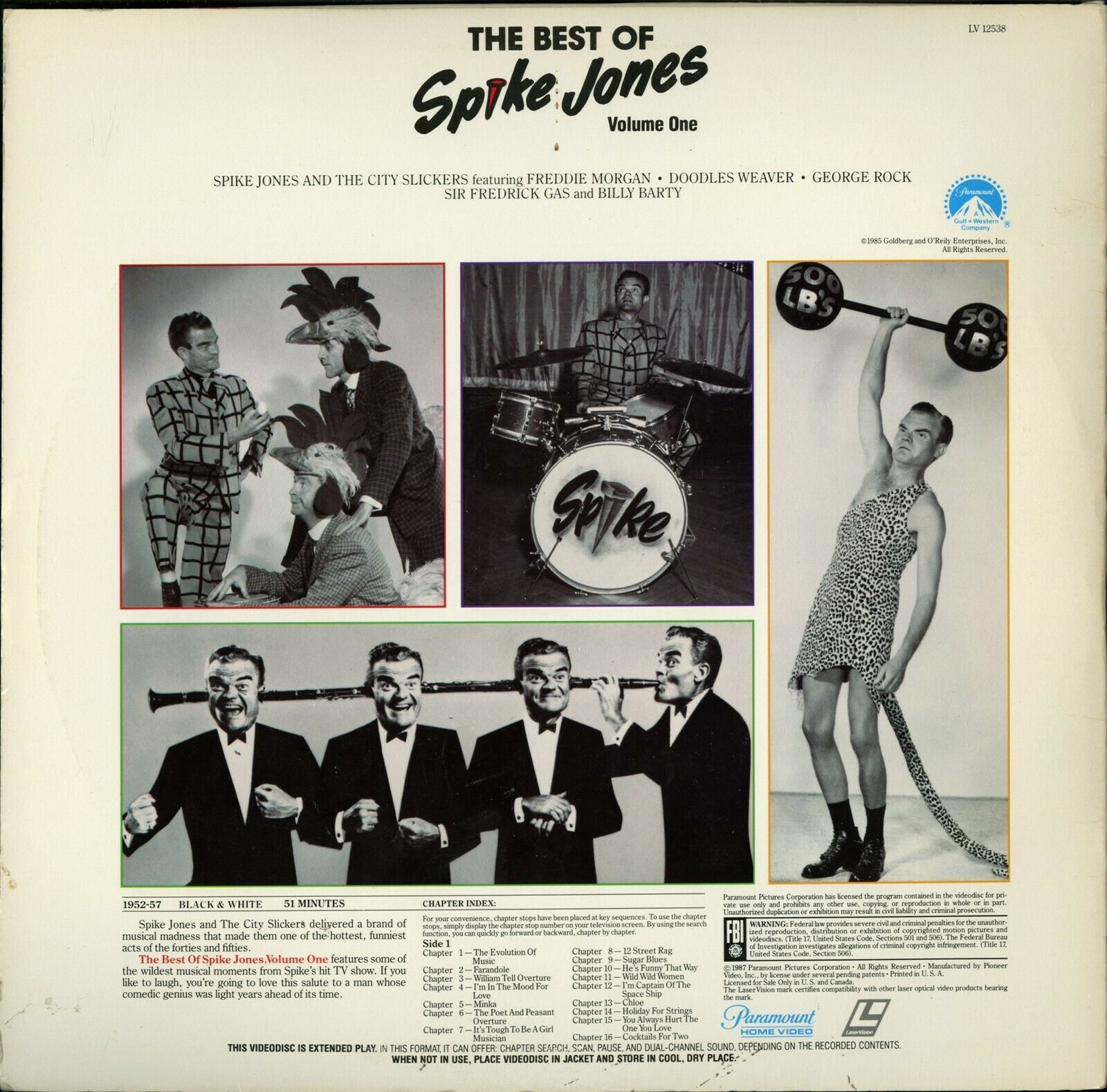 SPIKE JONES BEST OF VOL 1 LASERDISC PARAMONT VIDEO TESTED