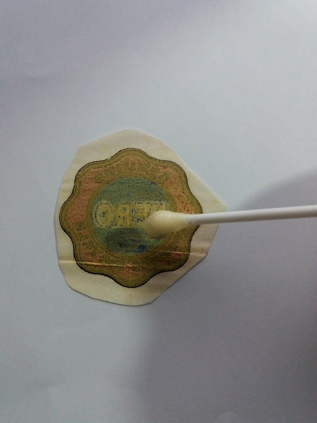 2.Cut the sticker around Logo / Alphabet and then put a little clear spray paint that you put on a small container/plate, using cotton bud