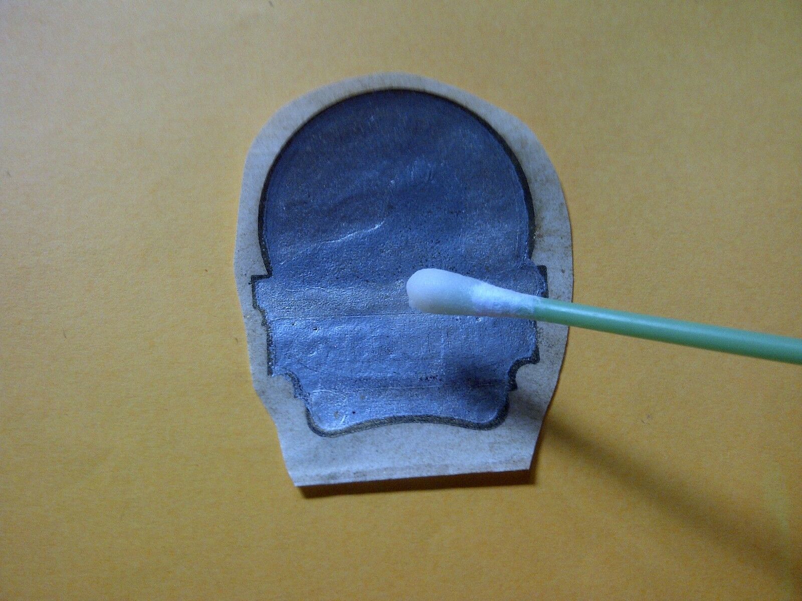 2.Cut the sticker around Logo / Alphabet and then put a little clear spray paint that you put on a small container/plate, using cotton bud