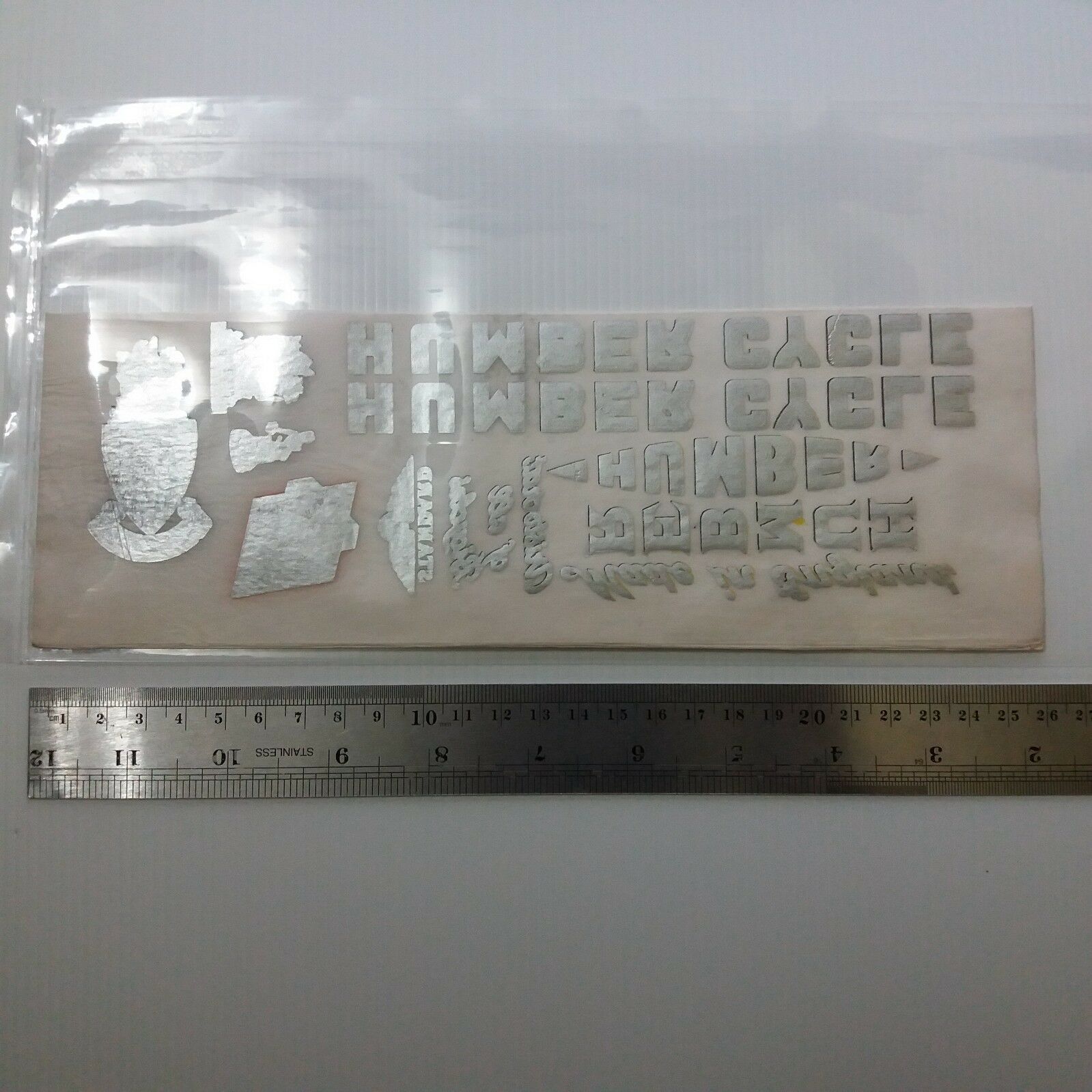 2.Cut the sticker around Logo / Alphabet and then put a little clear spray paint that you put on a small container/plate, using cotton bud