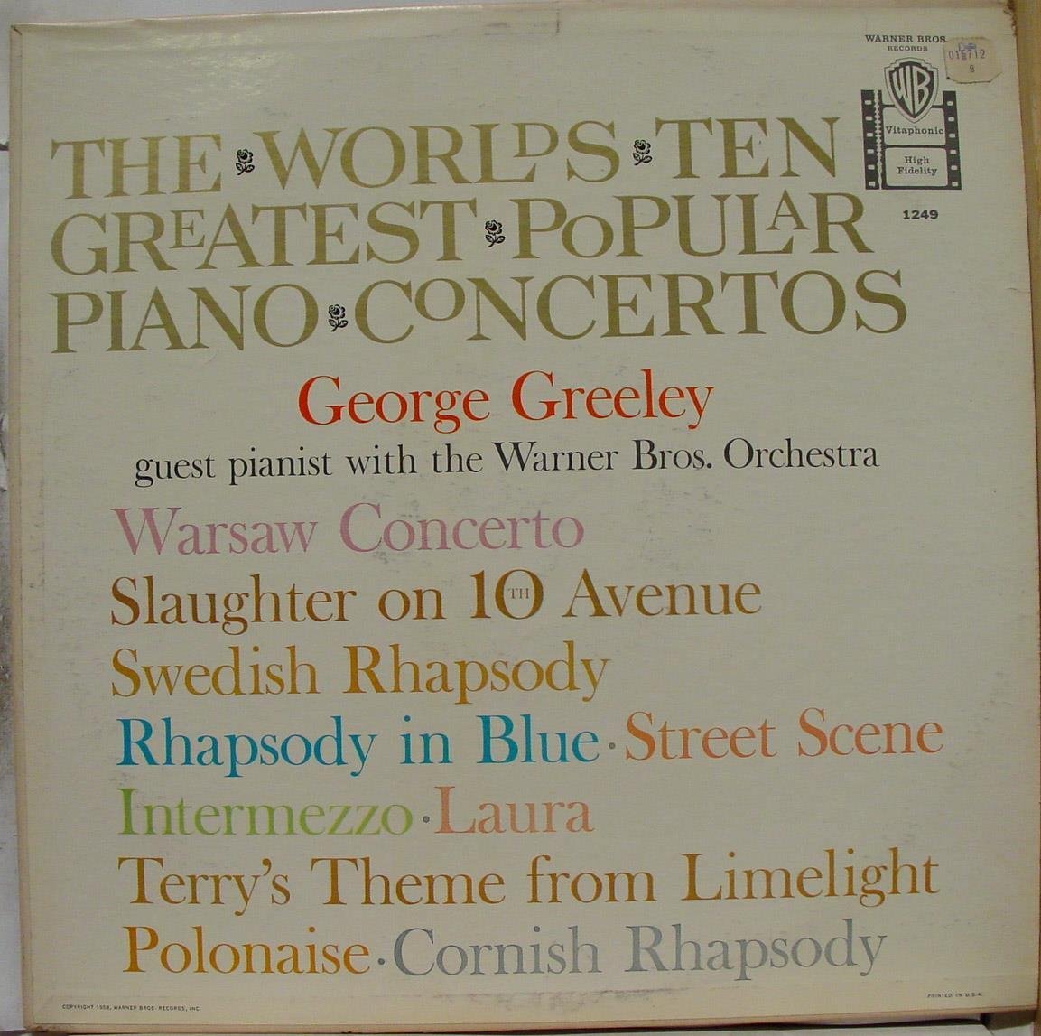 GEORGE GREELEY WORLD'S TEN GREATEST PIANO CONCERTOS vinyl record [Vinyl] George