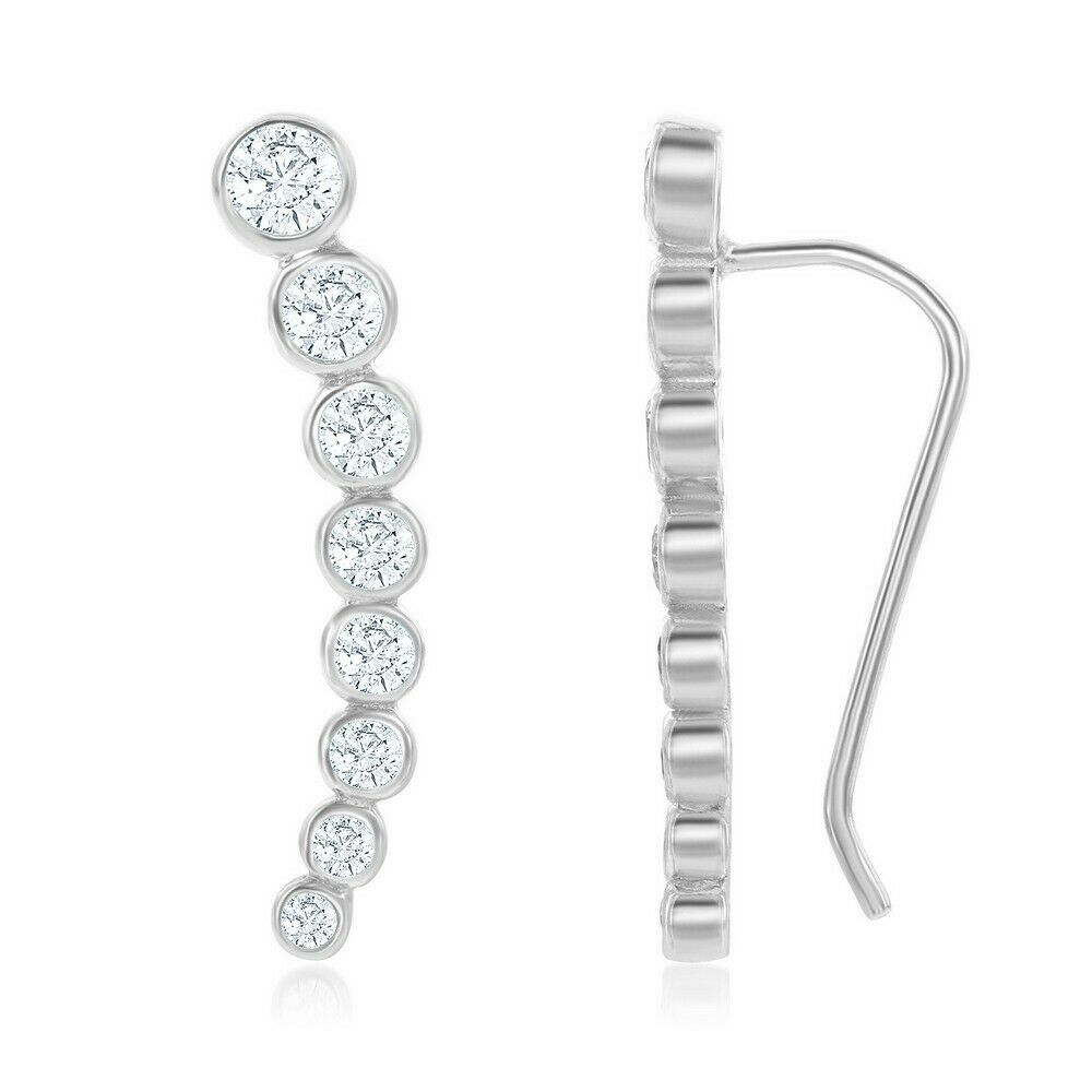 A new summer trend and for sure a trend that will stay forever! Featuring these stylish graduating round bezel-set clear cubic zirconias climber earrings that for sure will dazzle everywhere you go; made of .925 sterling silver. Perfect to wear them on any type of occasion, formal or casual. With a very comfortable french wire back finding that you won't even feel while wearing them. Impossible not to fall in love with these gorgeous, fashionable, great-looking, elegant climber earrings. Most seen earrings out there in the streets, a trend of the moment, earrings used by everyone, including actual famous influencers and actresses. These summer trend earrings are a must-have in your earrings jewelry collection. Don't let this summer leave you out of fashion without using these latest stylish earrings. A sin to party without wearing these elegant climber earrings.