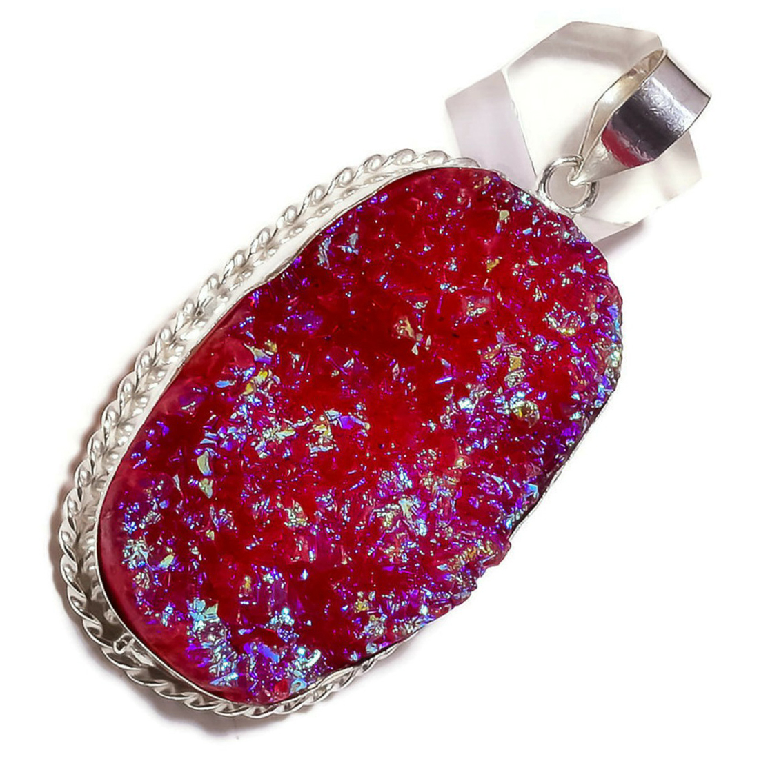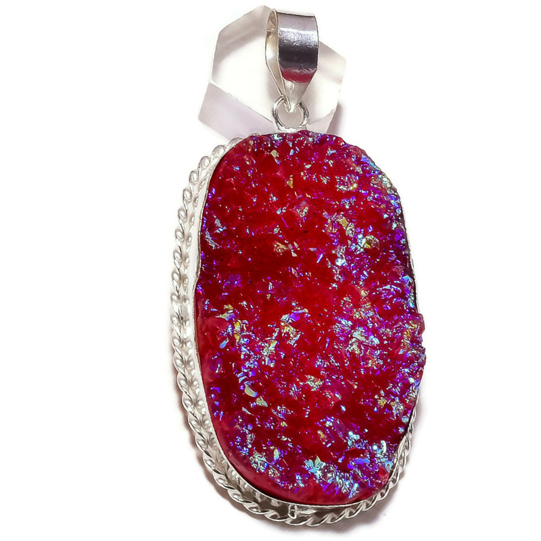 Titanium Druzy Oval Gemstone 925 Silver Overlay Handmade Large Rope Bezel Pendant