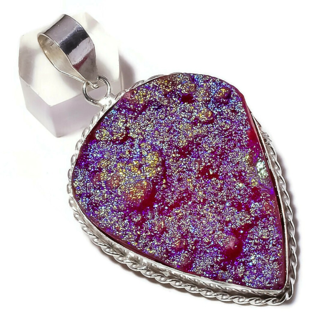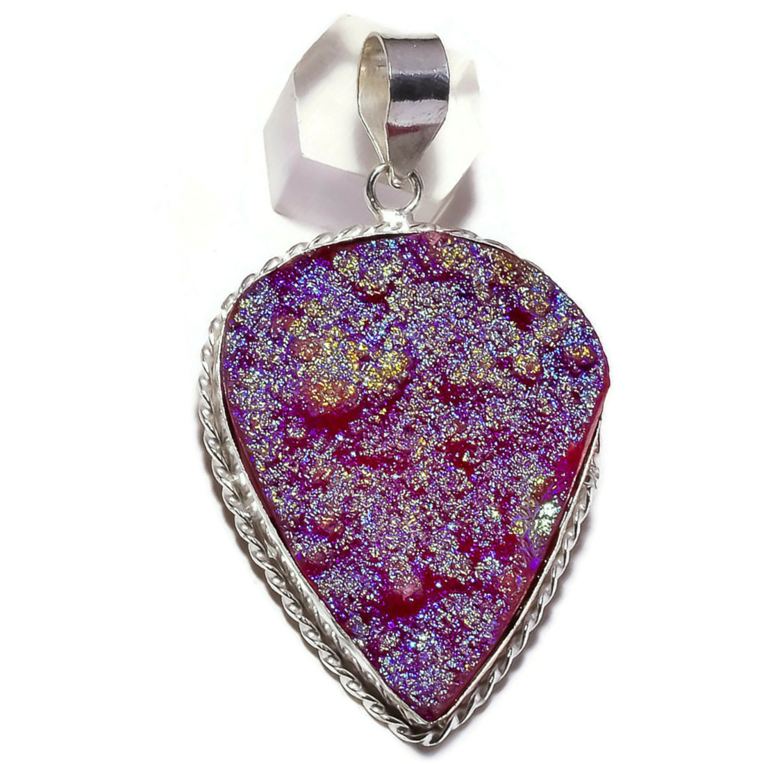 Titanium Druzy Pear Gemstone 925 Silver Overlay Handmade Large Rope Bezel Pendant