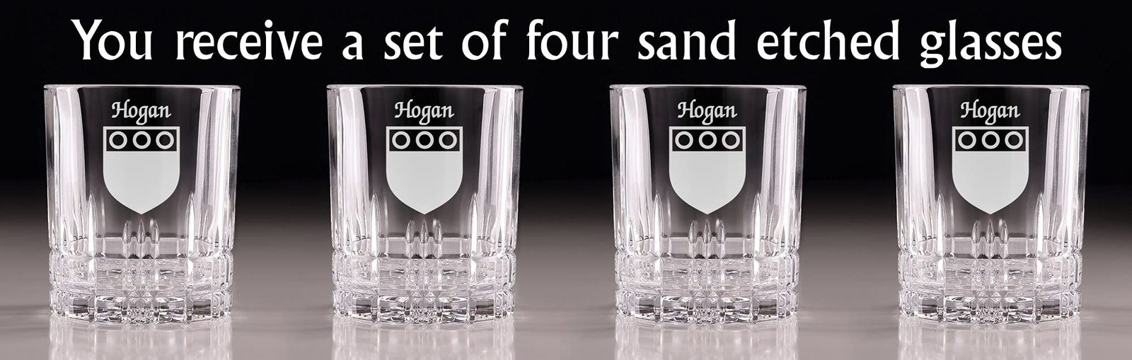 Holland Irish Coat of Arms Cut Glass Tumblers - Set of 4. Pour your favorite beverage and enjoy it in luxury! These Spiegelau Perfect Serve double old fashioned glasses are the perfect way to elevate your home glassware! Featuring an elegant retro, cut-glass design and your very own Irish Coat of Arms expertly hand-sandblasted onto each tumbler, this glass is sure to impress! Made with Spiegleau's unique Platinum Glass process to eliminate imperfections in the glass, they're thick-walled, heavy weighted, and crystal clear!