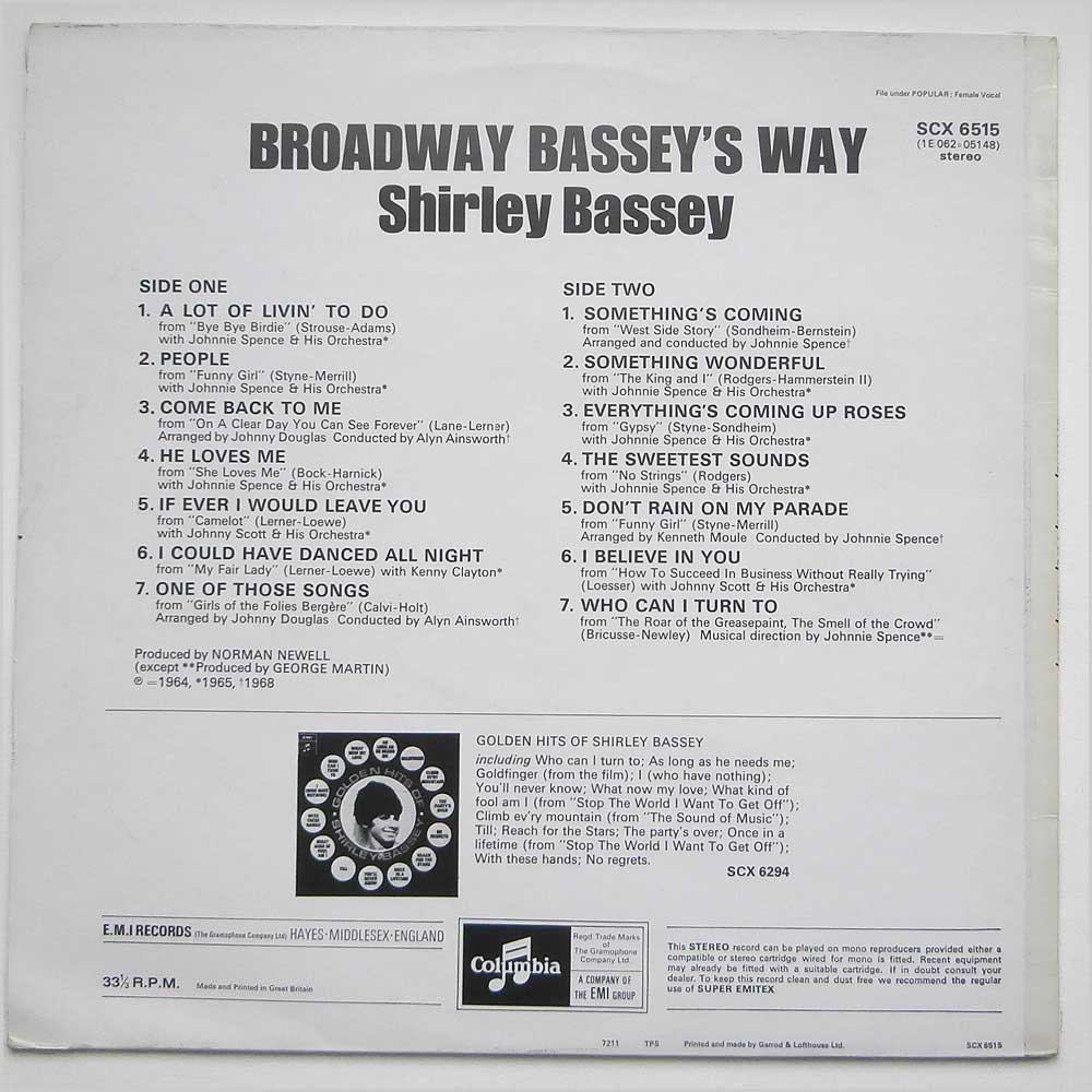 Broadway Basseys Way - Shirley Bassey LP and similar items