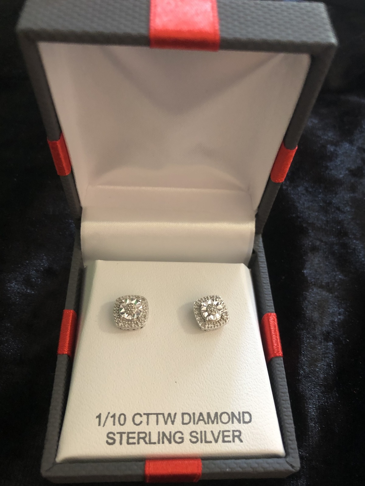 Diamond Stud Square Earrings (1/10 ct. t.w.) in Sterling Silver: New in box as shown