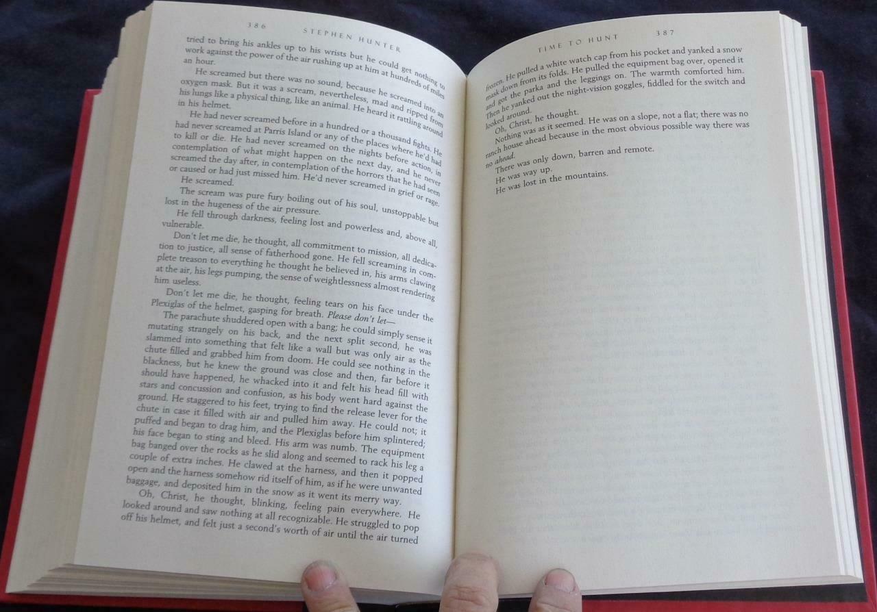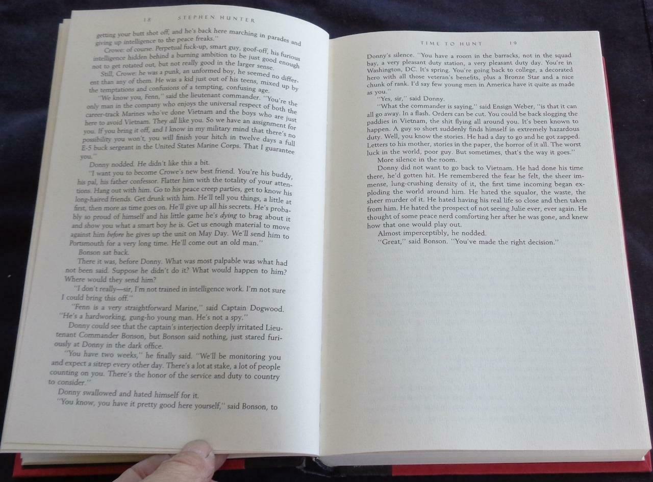 Offered here is this hard cover first edition of Time To Hunt, by Stephen Hunter. It is in particularly good condition, with only some minor wear at the corners and edges. The spine and binding are good, and all 467 pages are intact and in good condition. The book is unfortunately missing its dust jacket. The book was published by Doubleday, is a first edition and has a copyright date of 1998. It is a genuinely nice book, and makes a great read…