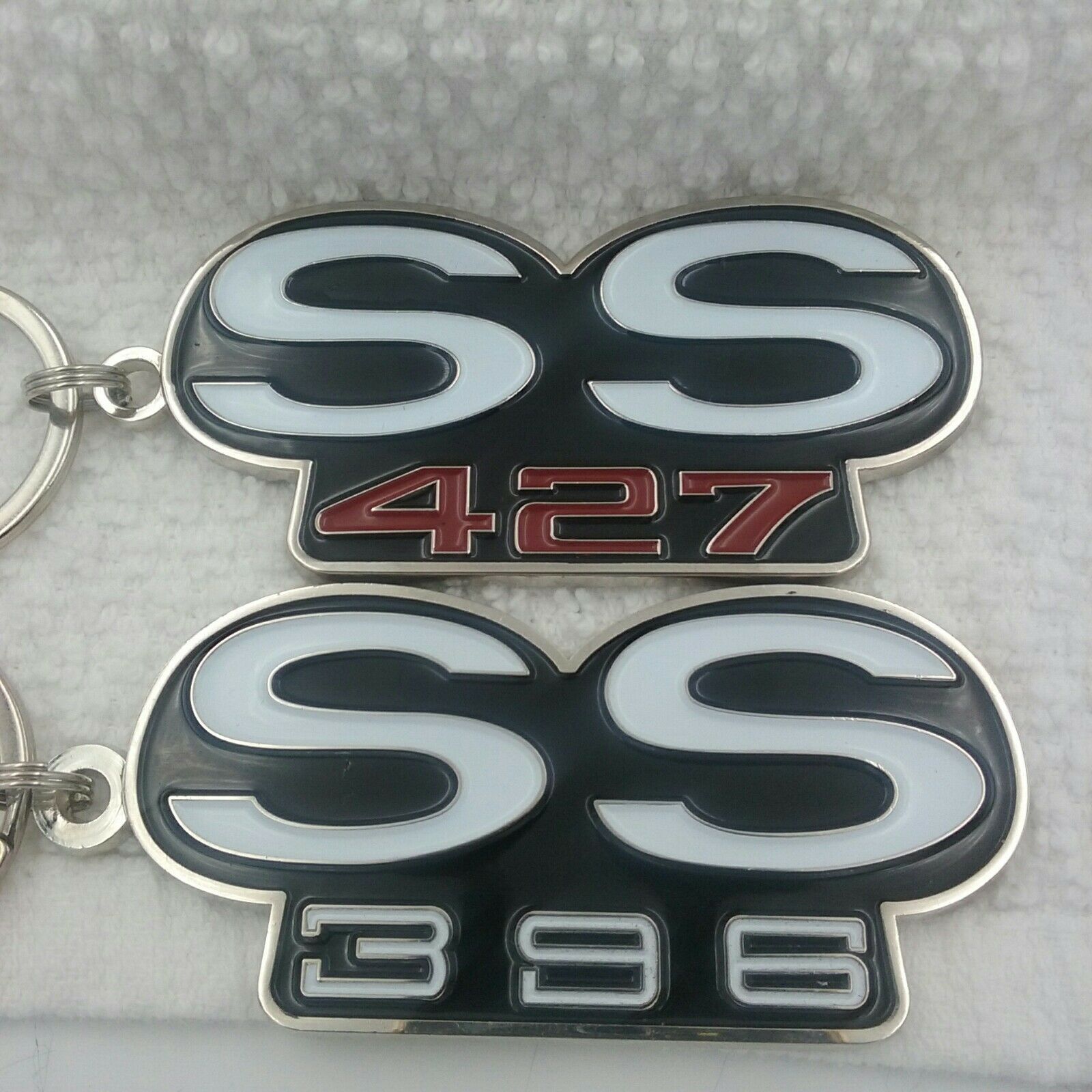 Top quality "SS396" emblem keychain. You will not be disappointed with the craftsmanship. Heavy duty, painted metal. I also have available the "SS427" emblem keychain. Check out all my quality muscle car items. I included some pictures of a sample of my others available. Thanks Bob