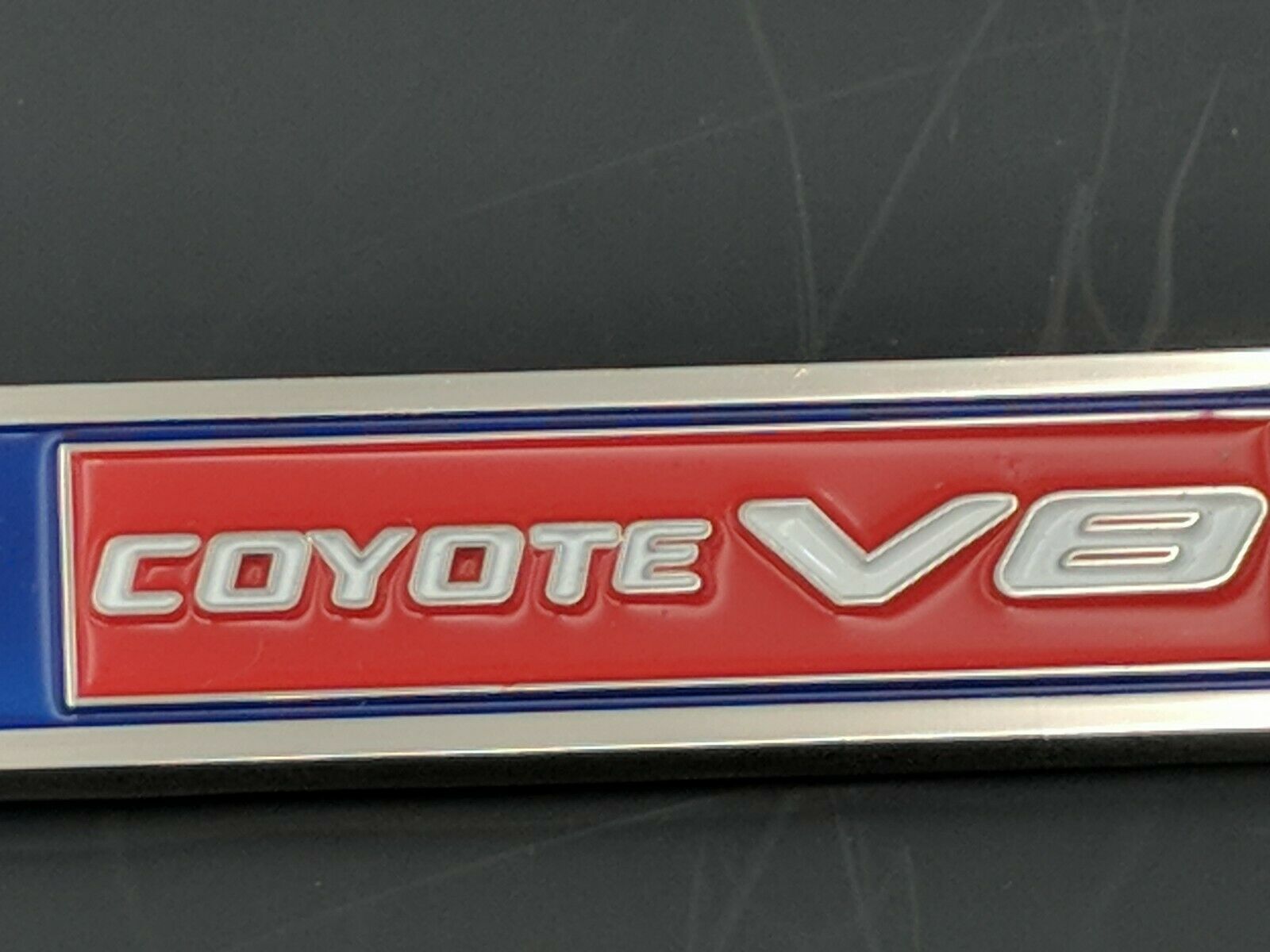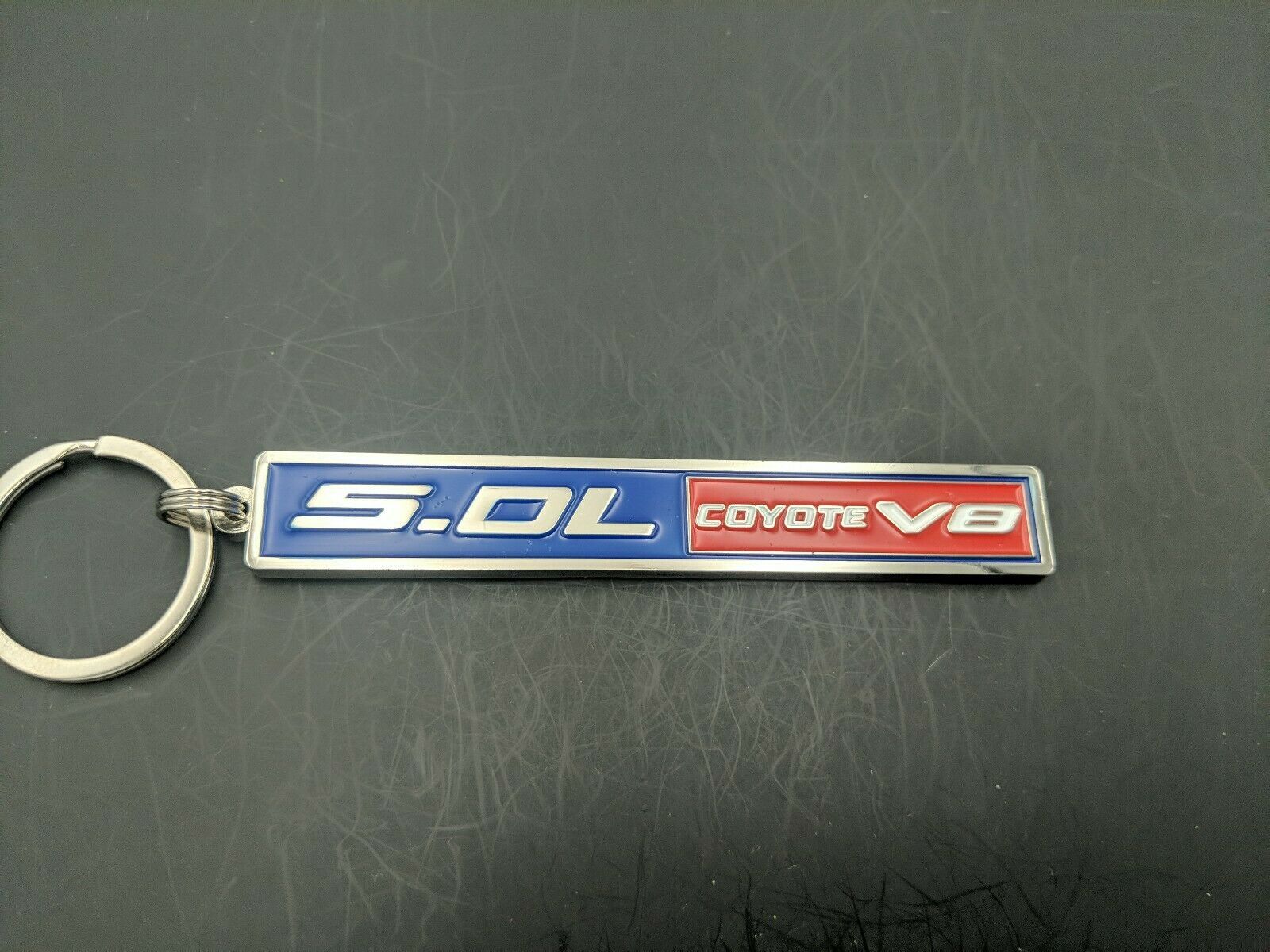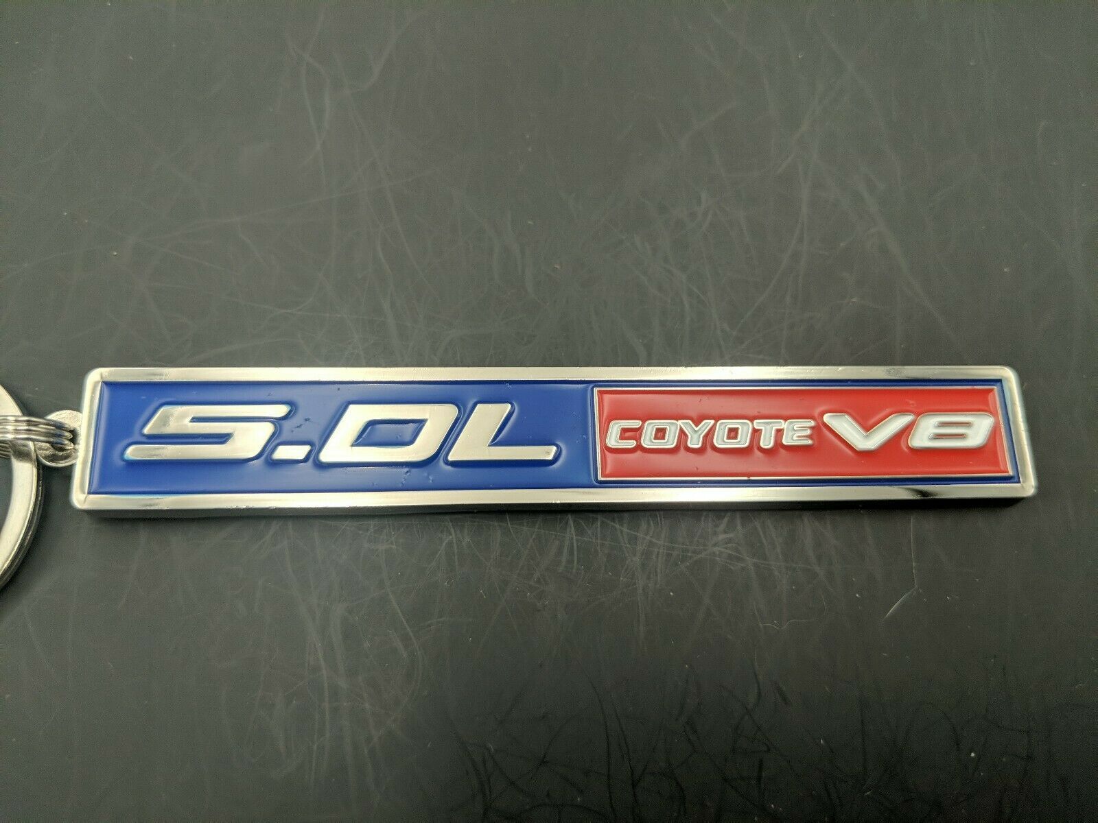 Ford 5.0 Coyote Emblem/Keychain (H12). Condition is New. Single sided, measurements are in my pictures. 3mm thick, very sturdy...The Ford Performance all-aluminum 2018-2019 5.0L Coyote crate engine is a modern 5.0L 32-valve DOHC V-8 that uses advanced features like Direct and Port Fuel Injection, Twin Independent Variable Camshaft Timing (Ti-VCT), high-flow cylinder heads, and heightened compression ratio to deliver 460 horsepower @ 7,000 rp