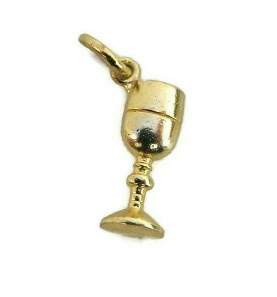 Authenticity Guarantee Wine Glass pendant charm 14k Yellow Gold.