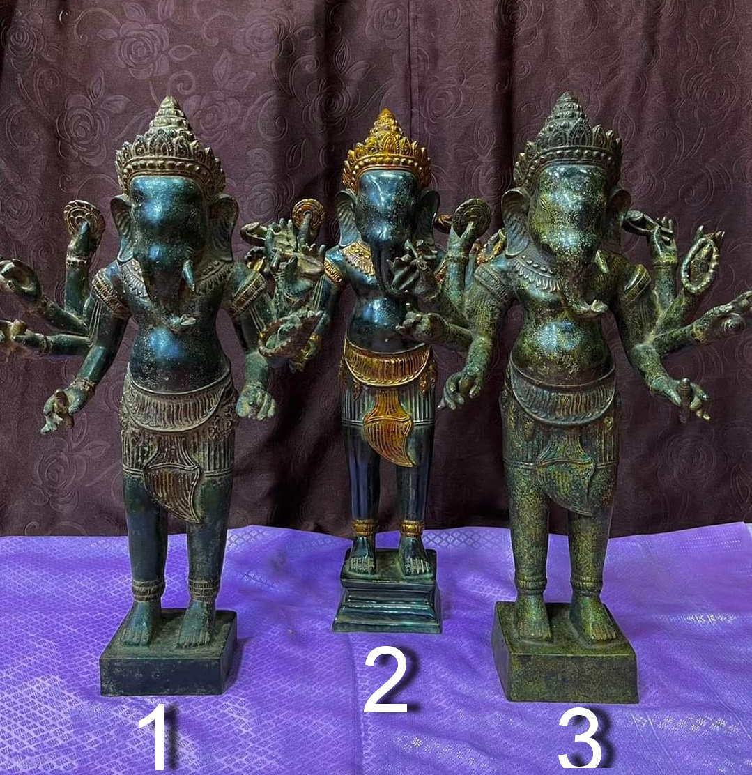 Ganesha Statue, Antique Khmer Style Thai Siam Standing Bronze Angkor Statue - 54