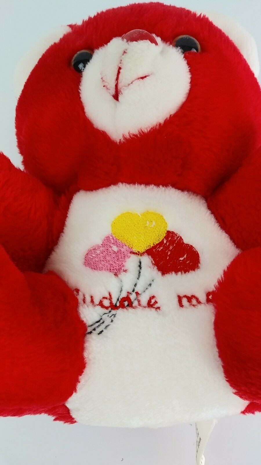 Vintage Stuffed Plush Red Teddy Bear Cuddle Me Heart Balloon Bootleg Carebear