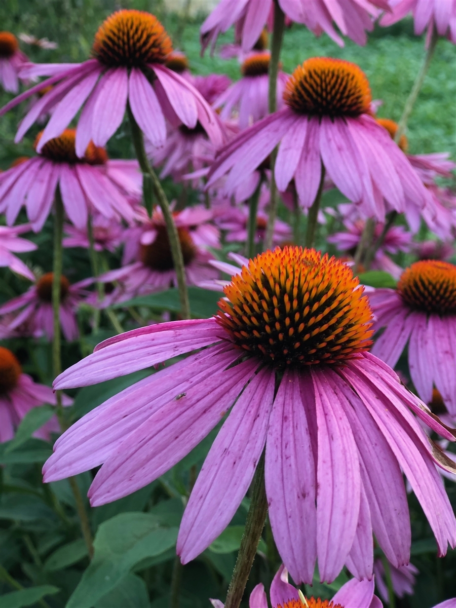 Perennial that likes full sun-part shade 24-36" tall, blooms June through October Zones 3-10 I've always thought of the cone flower slightly backward flower petals as daisies-in-a-hurry. Long-lasting in my garden, they bloom right through July and August, particularly if deadheaded and not allowed to go to seed.