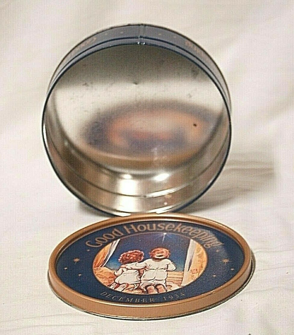 1991 Olive Can Metal Litho Tin Canister Advertising Good Housekeeping Dec. 1934