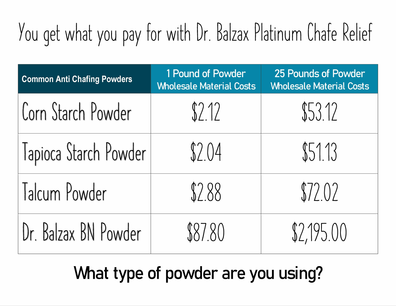 · How is Dr. Balzax best used? It replaces body powder for dry comfort and chafing prevention; only one application easily lasts all day. Use it in areas that have skin to skin rubbing or clothing to skin rubbing
