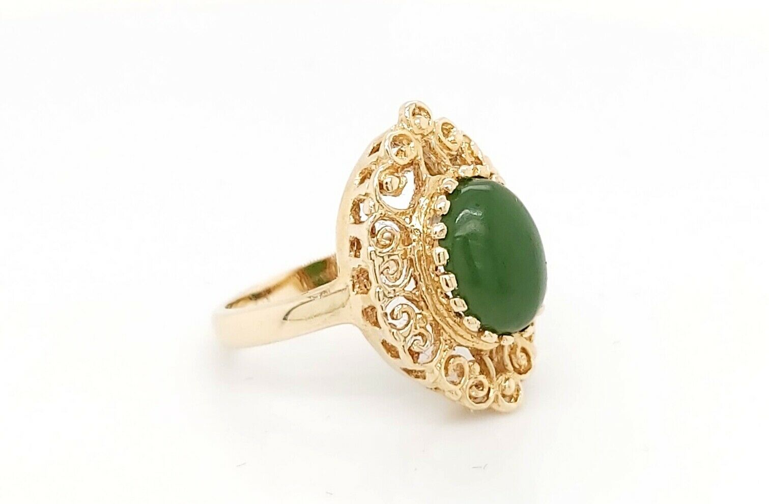 14k Yellow Gold Vintage Women's Ring With Jade Stone