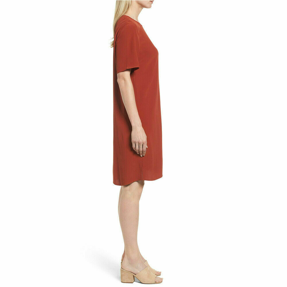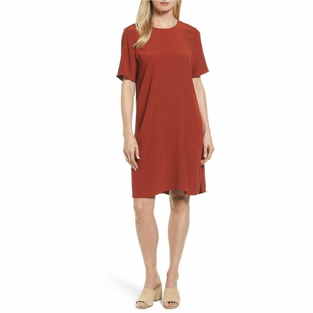 EILEEN FISHER Paprika Orange Tencel Viscose Crepe Shift Dress PP