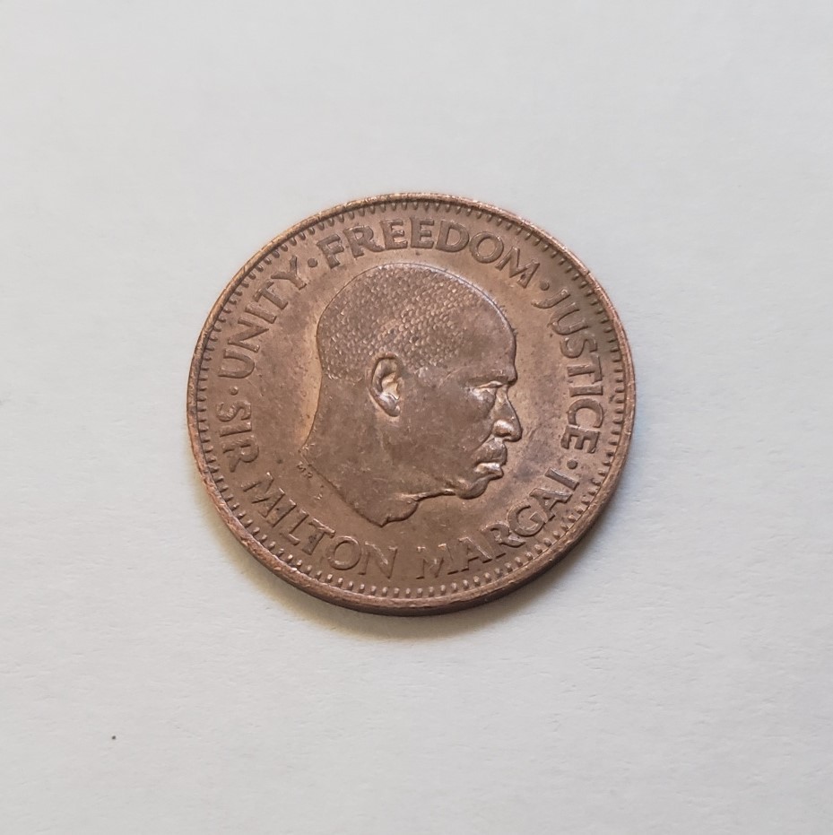 Lettering: UNITY FREEDOM JUSTICE. SIR MILTON MARGAI