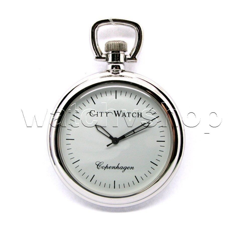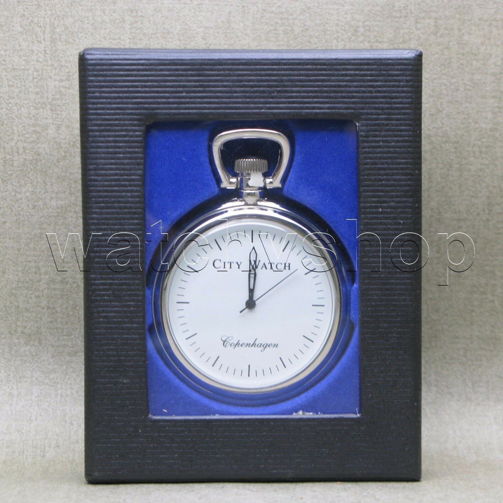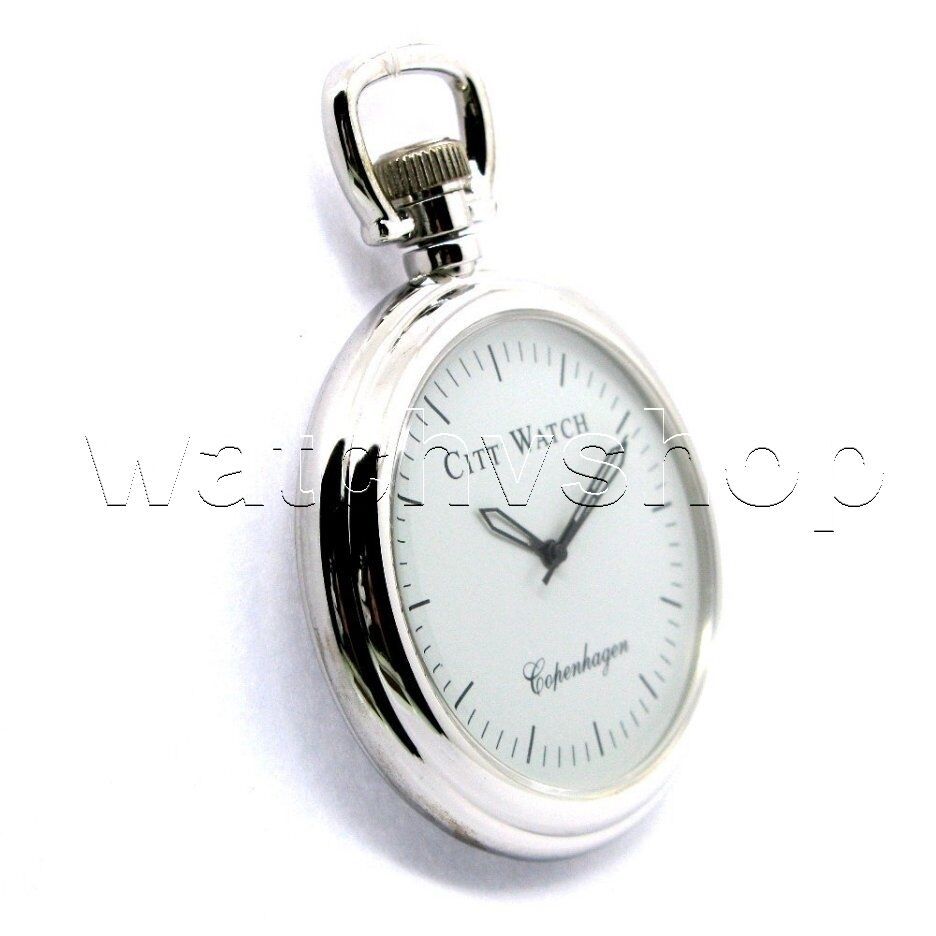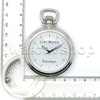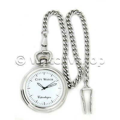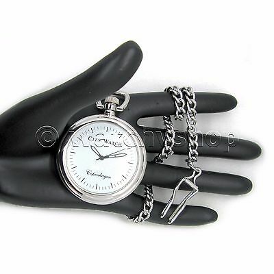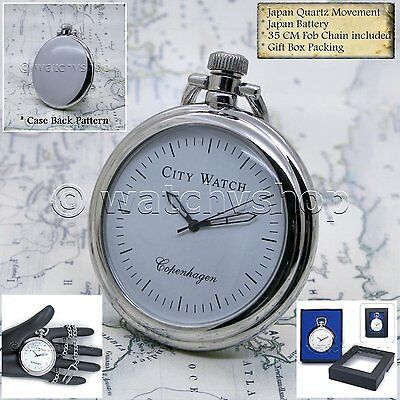 Pocket Watch Silver Color Open Face Big 49 MM for Men with Fob Chain & Box P192