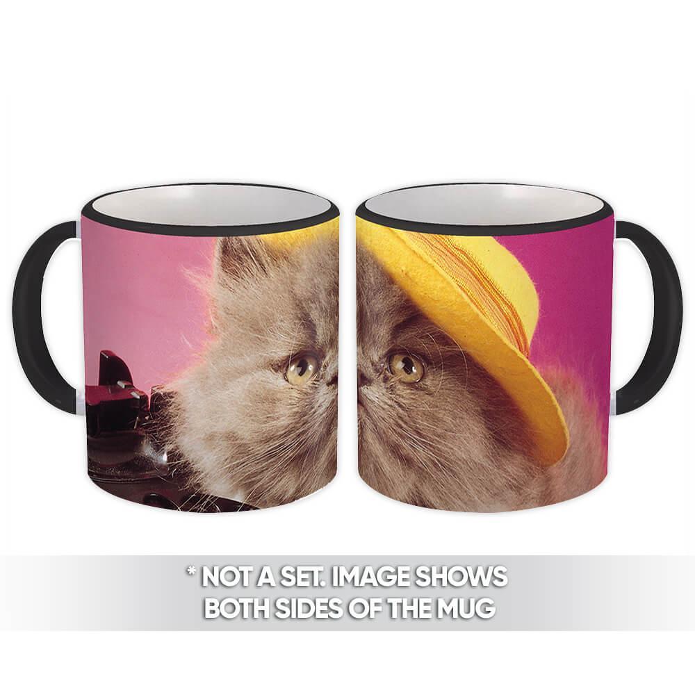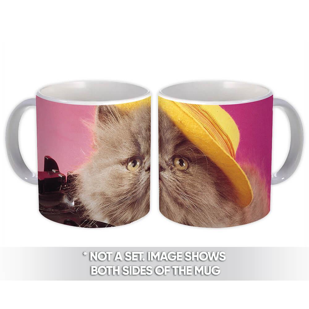 Cat : Gift Mug Cute Animal Kitten Funny Friend Yellow Hat