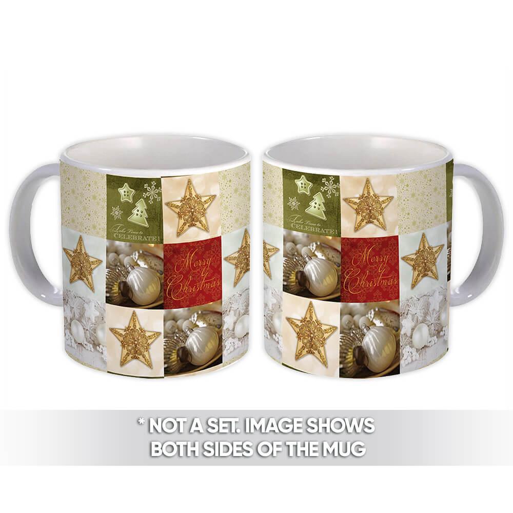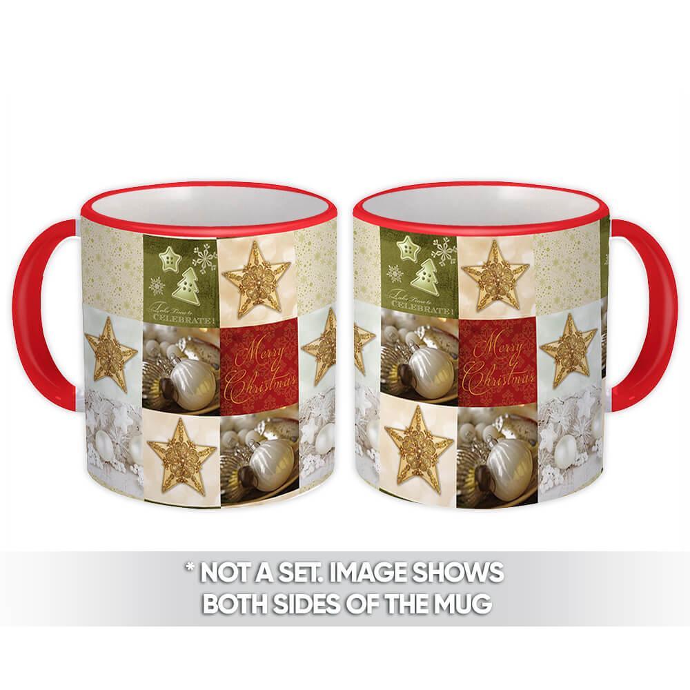 Christmas Tree Baubles : Gift Mug New Year Pattern Holidays Square Quilt Decor S