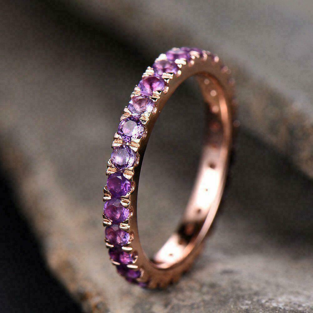 2.50Ct Round Cut Purple Amethyst Eternity Wedding Band Ring 14k Rose Gold Finish
