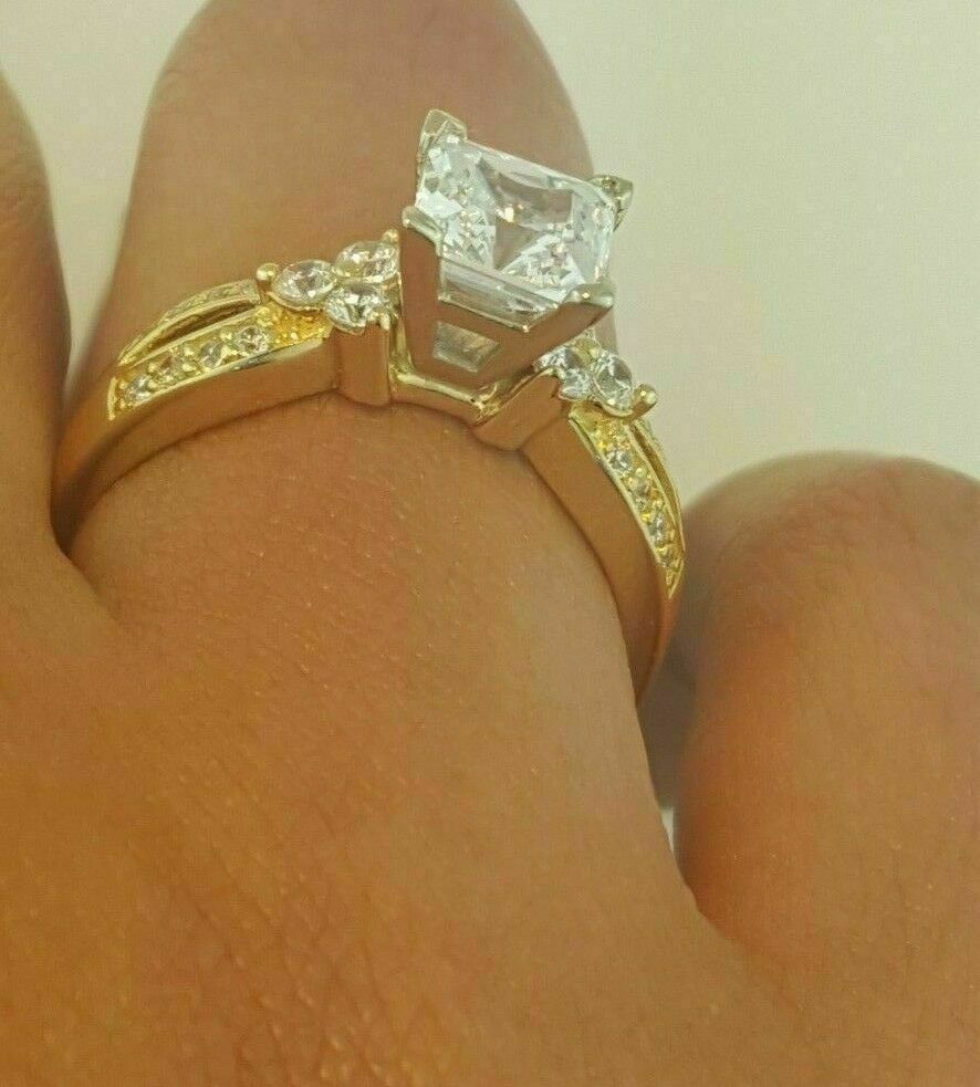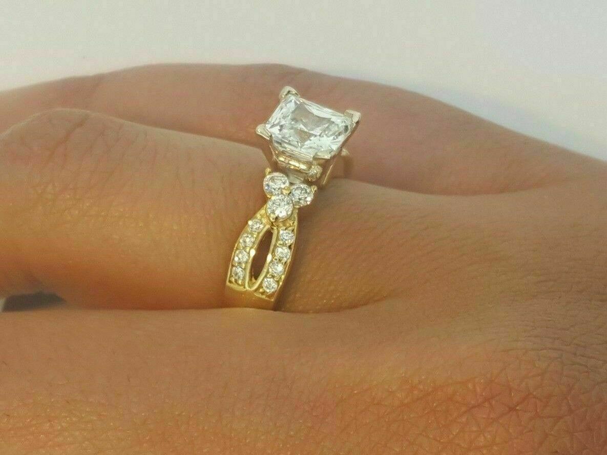 1.50Ct Princess Cut Diamond Accent Engagement Band Ring 14K Yellow Gold Finish