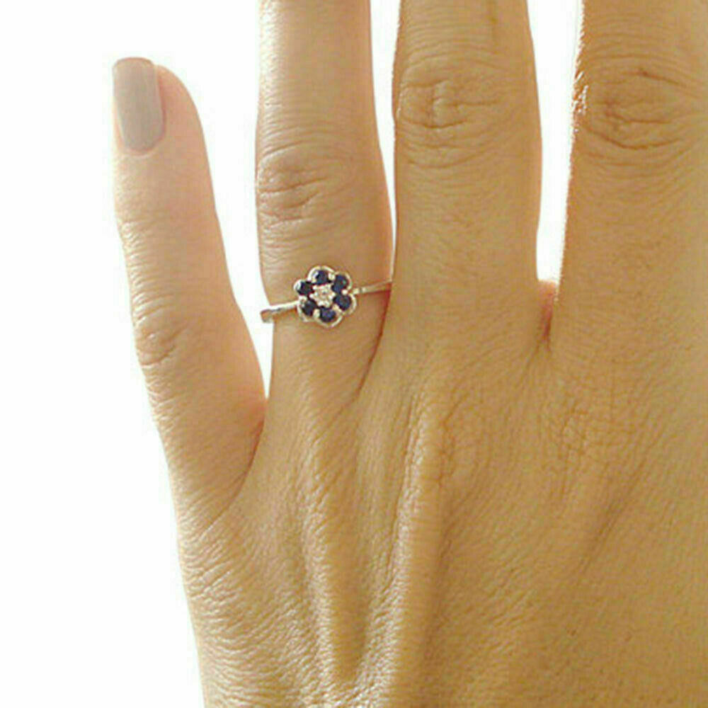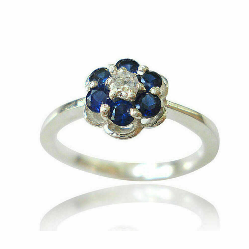 2Ct Round Cut Diamond/Sapphire Cluster Engagement Ring 14K White Gold Finish