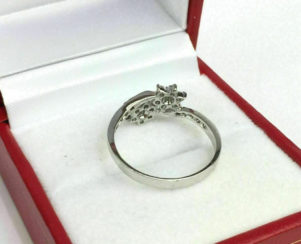 2Ct Round Cut Diamond Double Flower Engagement Ring 14K White Gold Finish
