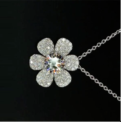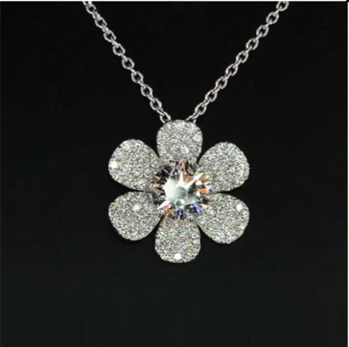 2.20Ct Round Cut VVS1/D Diamond Flower Pendant Free Chain 14K White Gold Finish