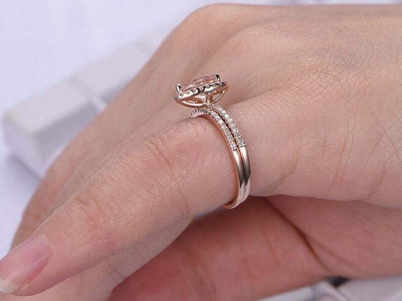 2.55Ct Pear-Cut Morganite Bridal Set Halo and 50 similar items
