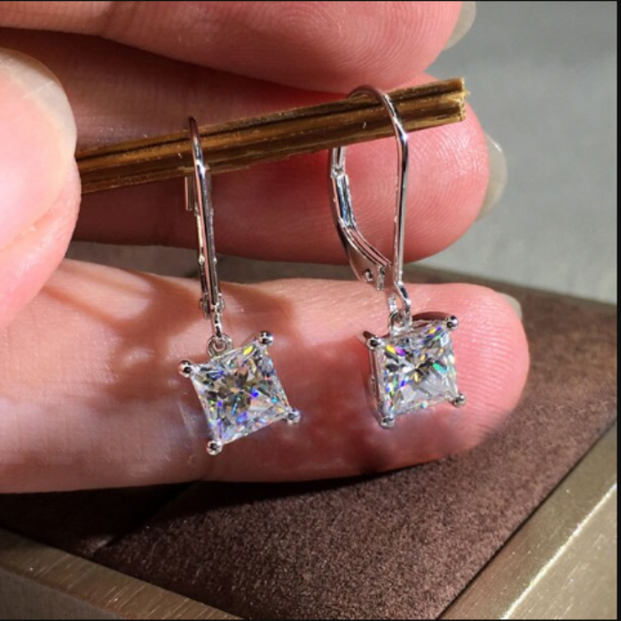4Ct Princess Cut VVS1/D Diamond Drop & Dangle Earrings 14k White Gold Finish