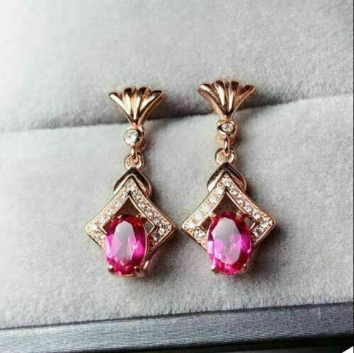 4Ct Oval Cut Pink Tourmaline Diamond Drop Dangling Earrings 14K Rose Gold Finish