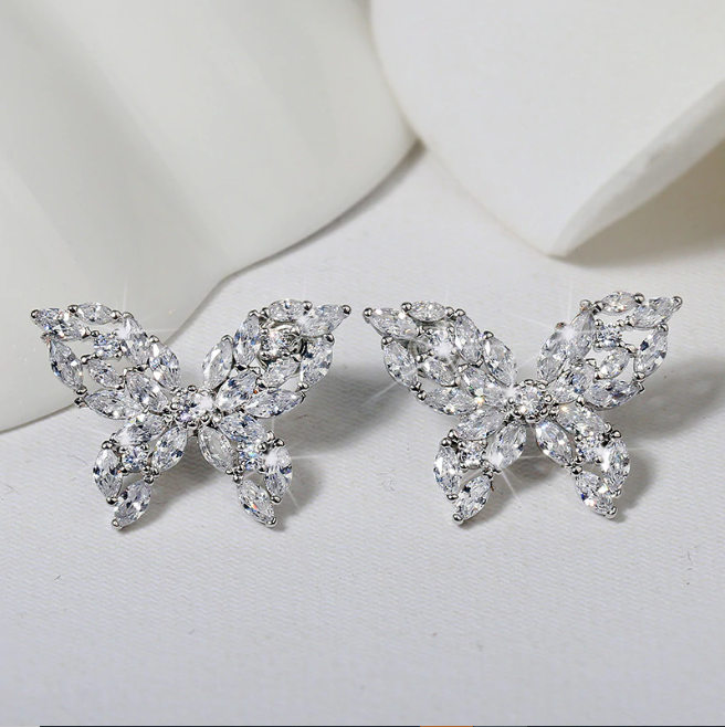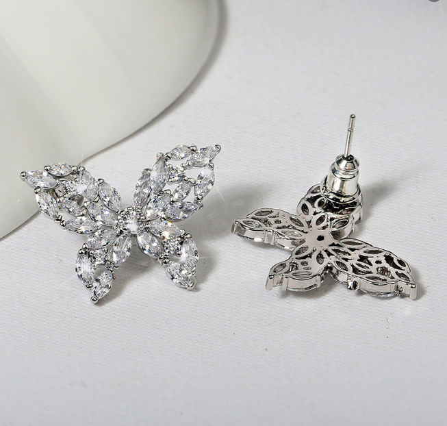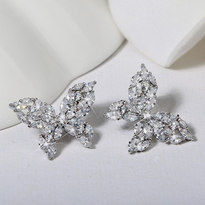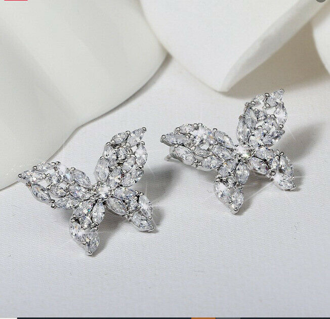 2Ct Marquise Cut Diamond Cluster Butterfly Stud Earrings 14K White Gold Finish