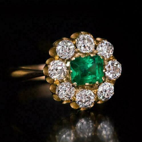 2Ct Round Cut Emerald & Diamond Cluster and similar items