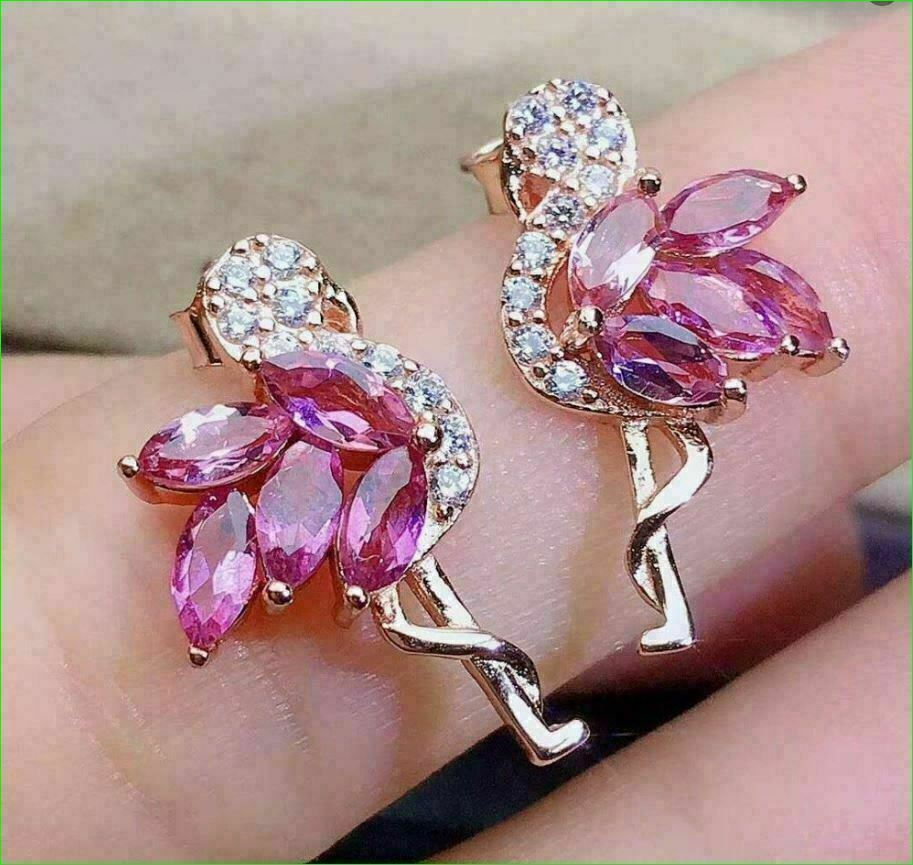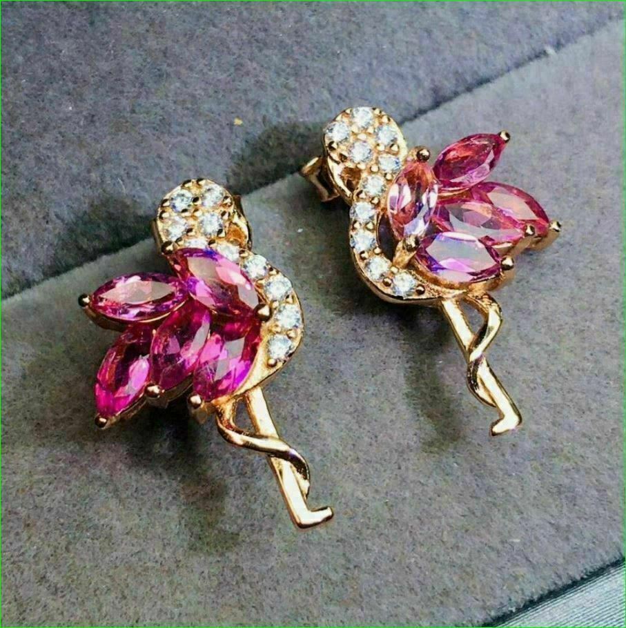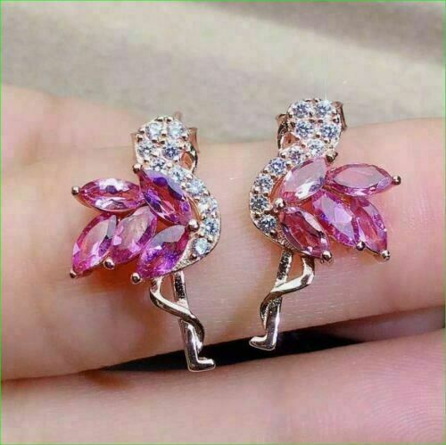 2.50Ct Marquise Cut Pink Sapphire Flamingo Stud Earrings 14K Yellow Gold Finish