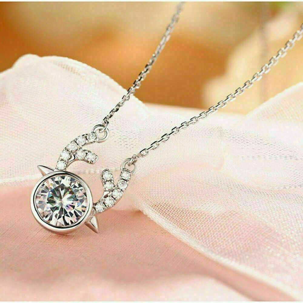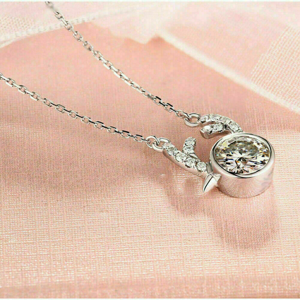 1CT Round Cut Diamond Fancy Pendant 14K White Gold Finish with Free Chain 18"