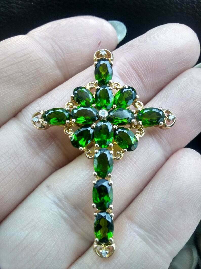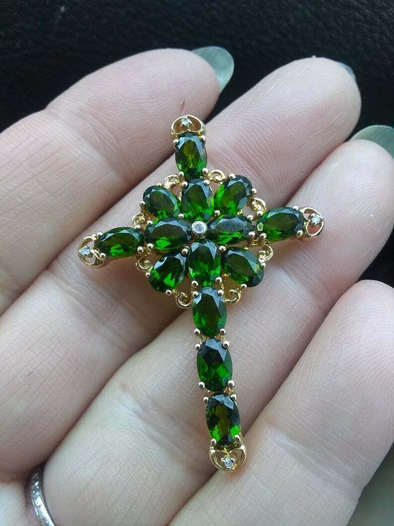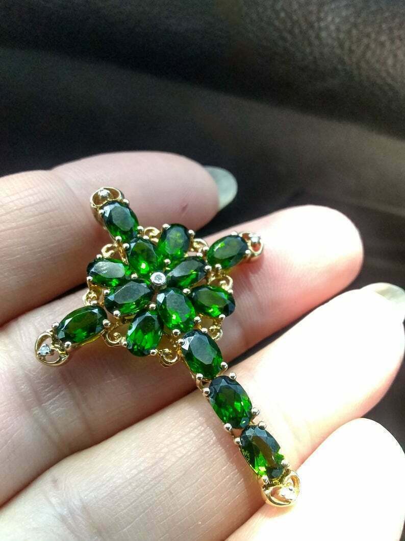 4Ct Oval Cut Emerald & Diamond Cross Pendant and 50 similar items