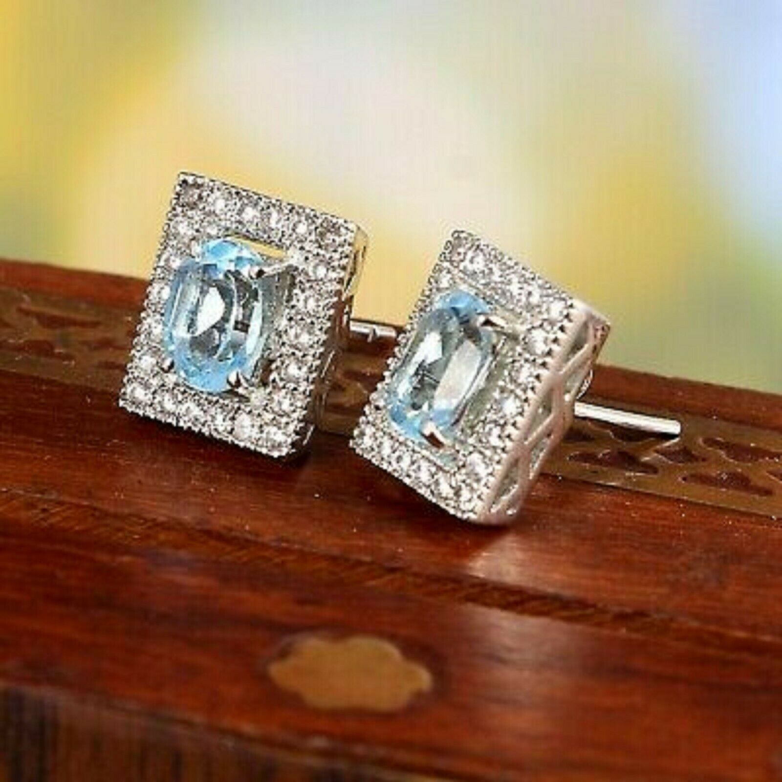 4Ct Oval Cut Blue Topaz Halo Push Back Stud and 50 similar items