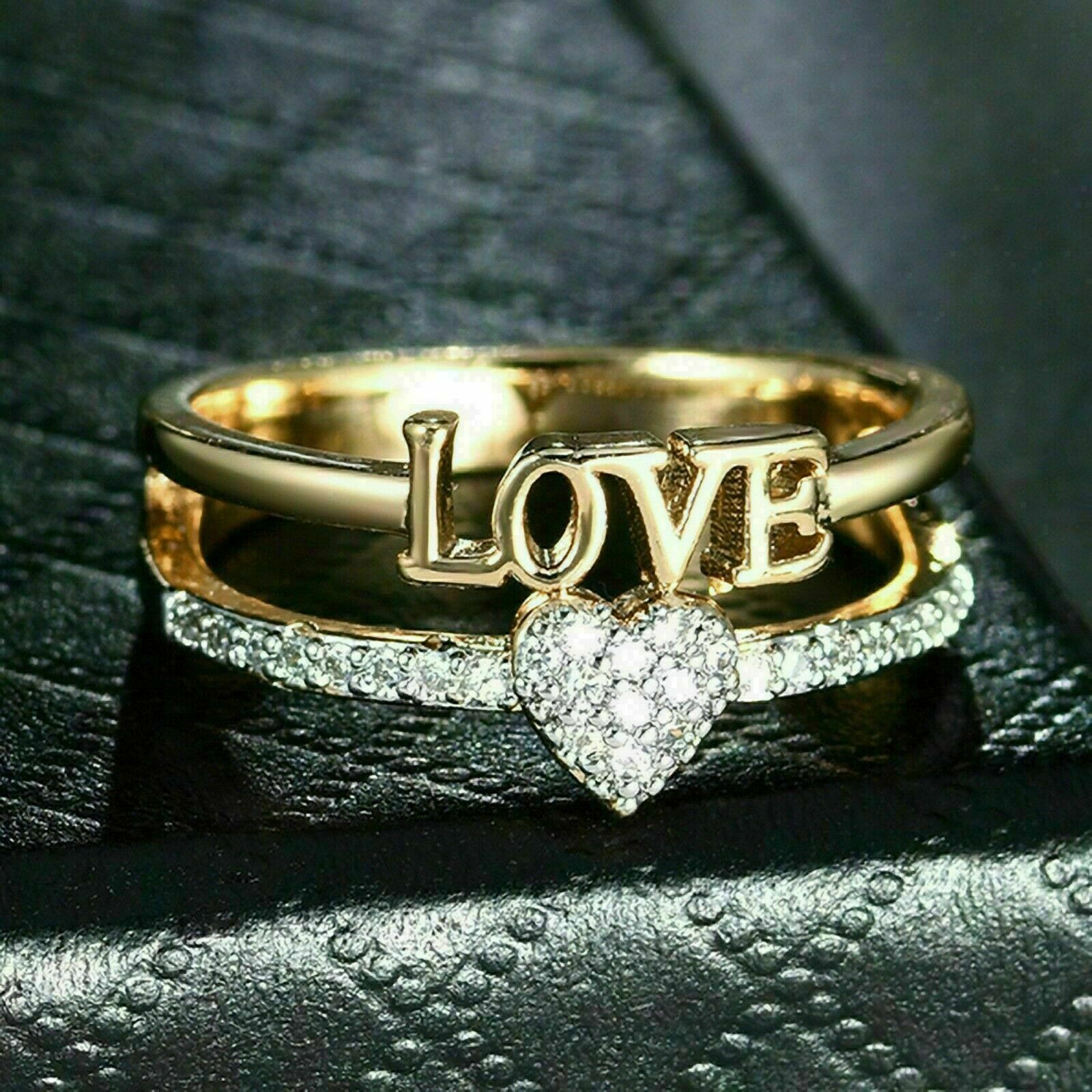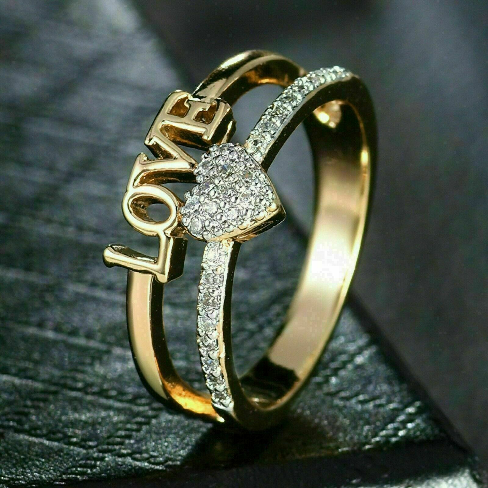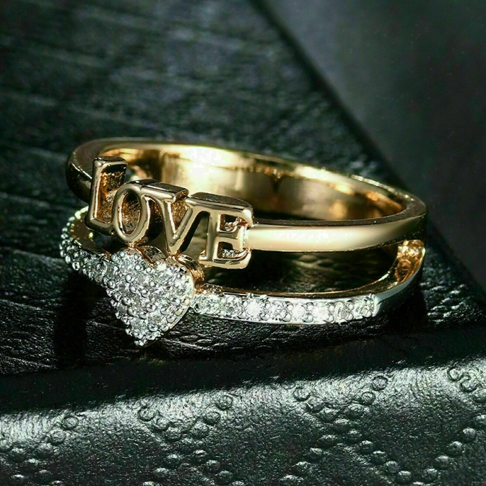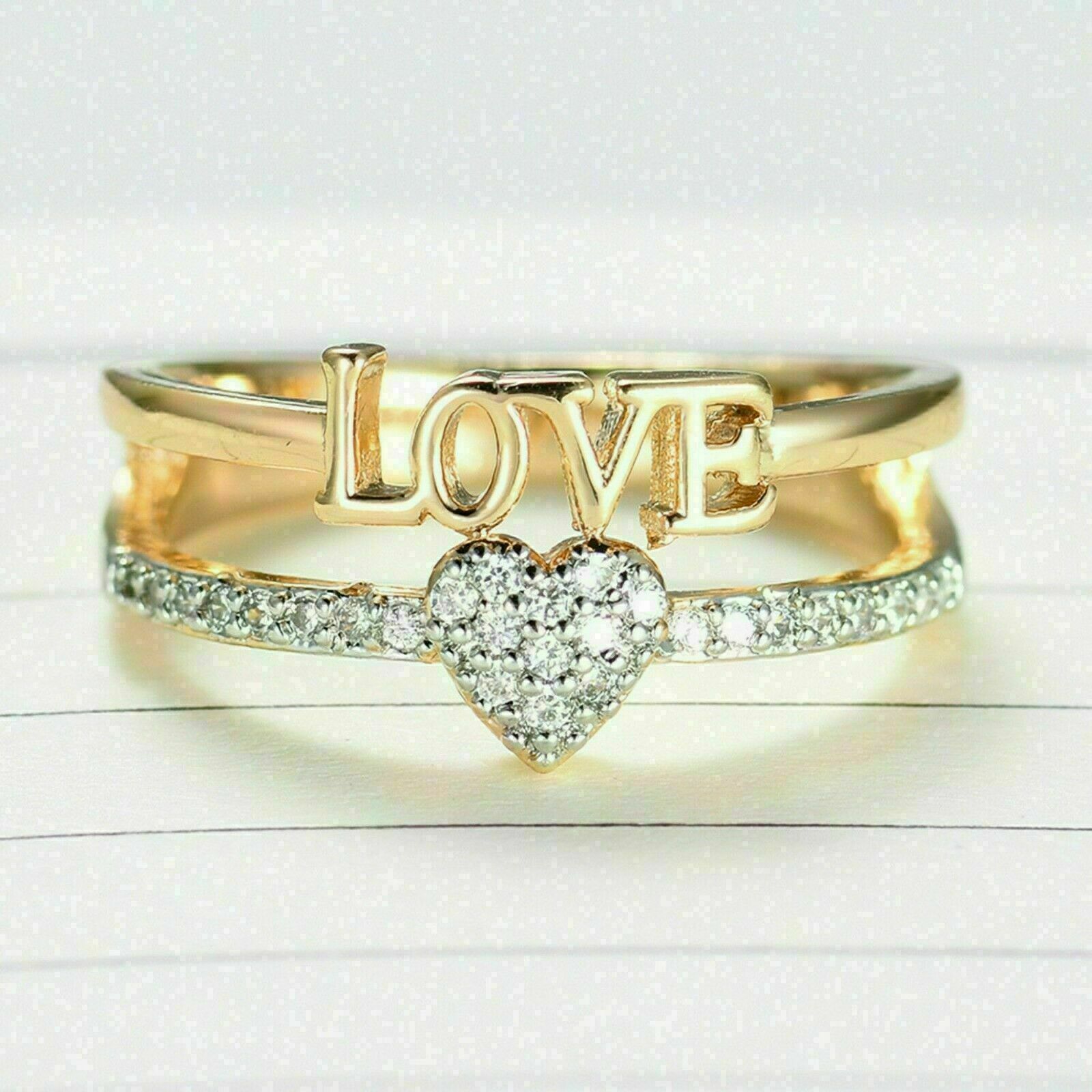 2Ct Round Cut Diamond Love Wedding Engagement Ring in 14K Yellow Gold Finish