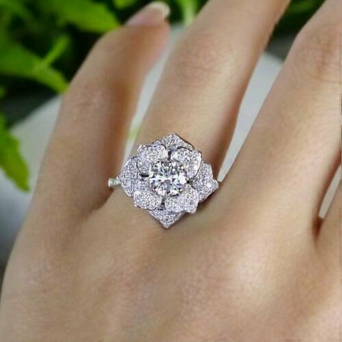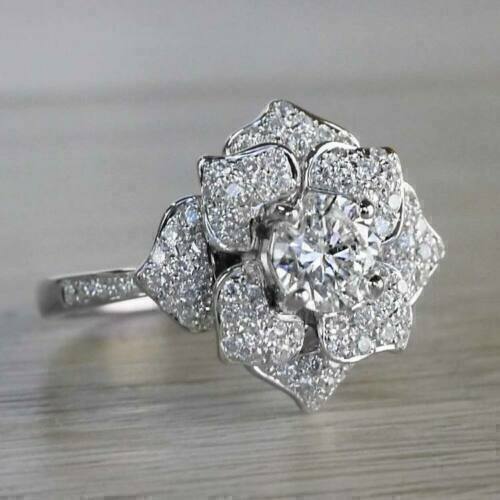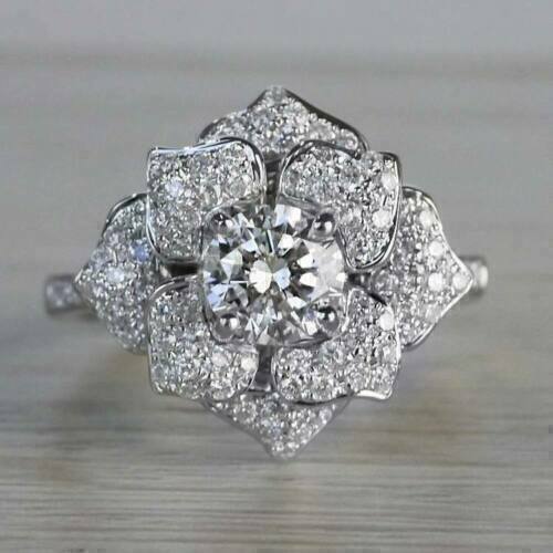 2.10Ct Round Cut Diamond Floral Engagement Wedding Ring 14K White Gold Finish
