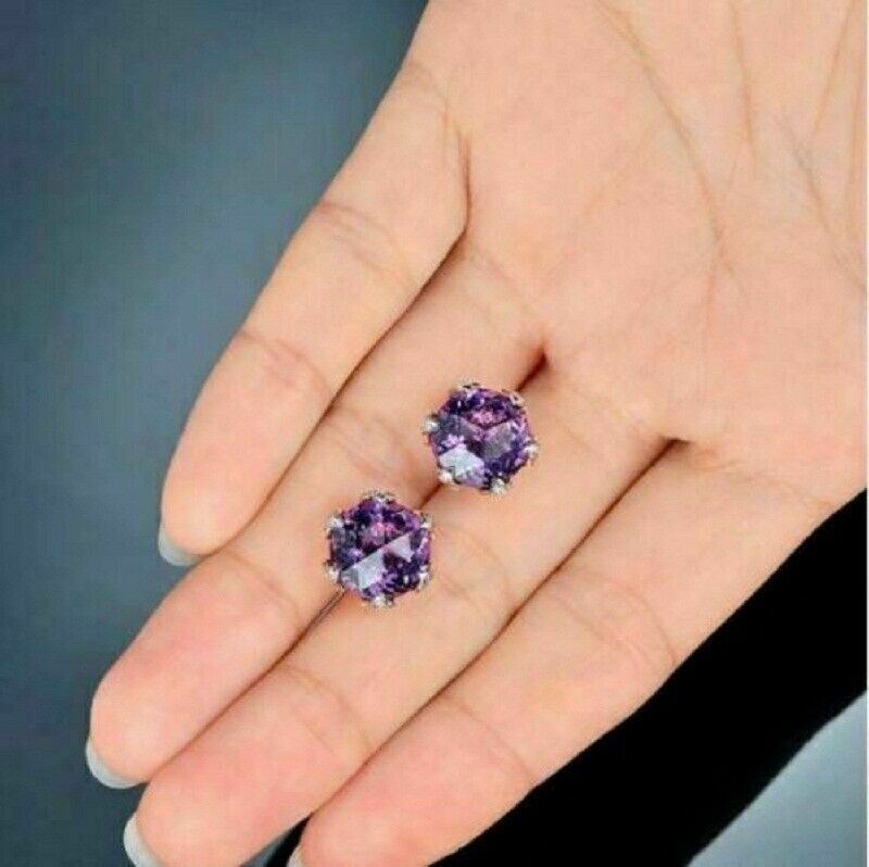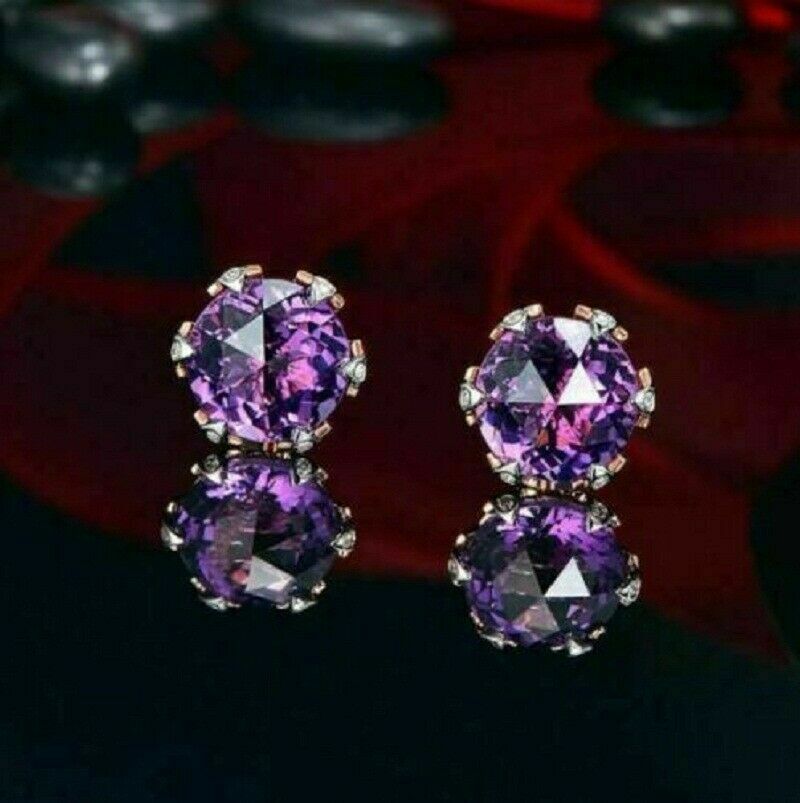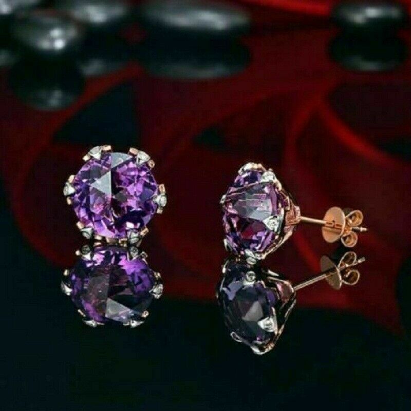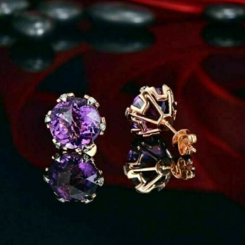 4Ct Round Cut Amethyst Women's Solitaire Stud Earrings 14K Rose Gold Finish