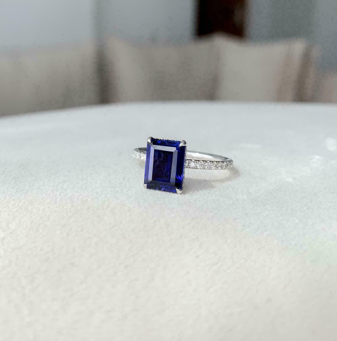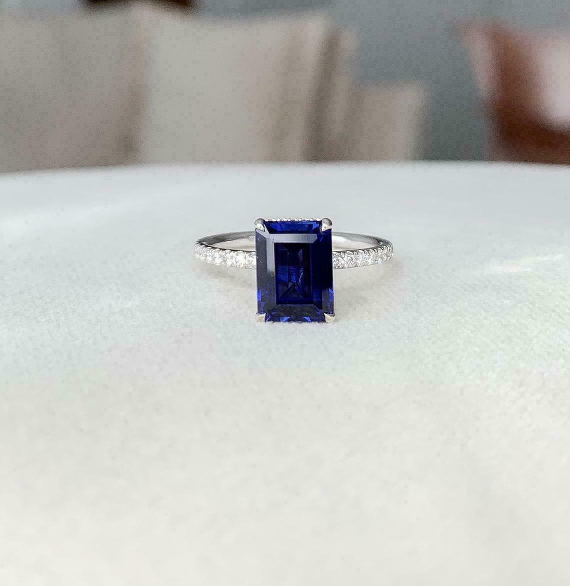 2Ct Emerald Cut Blue Sapphire Solitaire and similar items