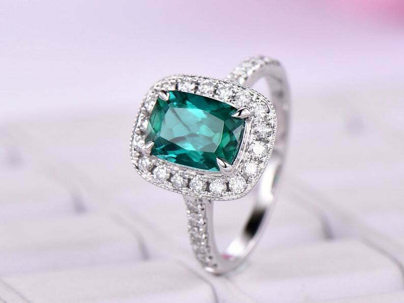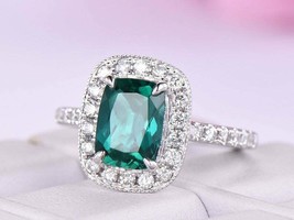 2.45Ct Cushion Cut Green Emerald Halo and 50 similar items