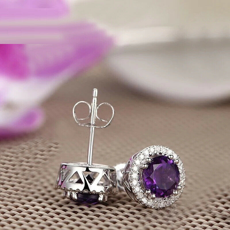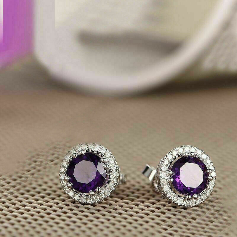 Delicated 2.65Ct Round Cut Amethyst Halo Stud Earrings In 14K White Gold Finish
