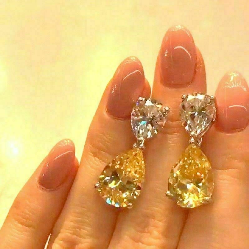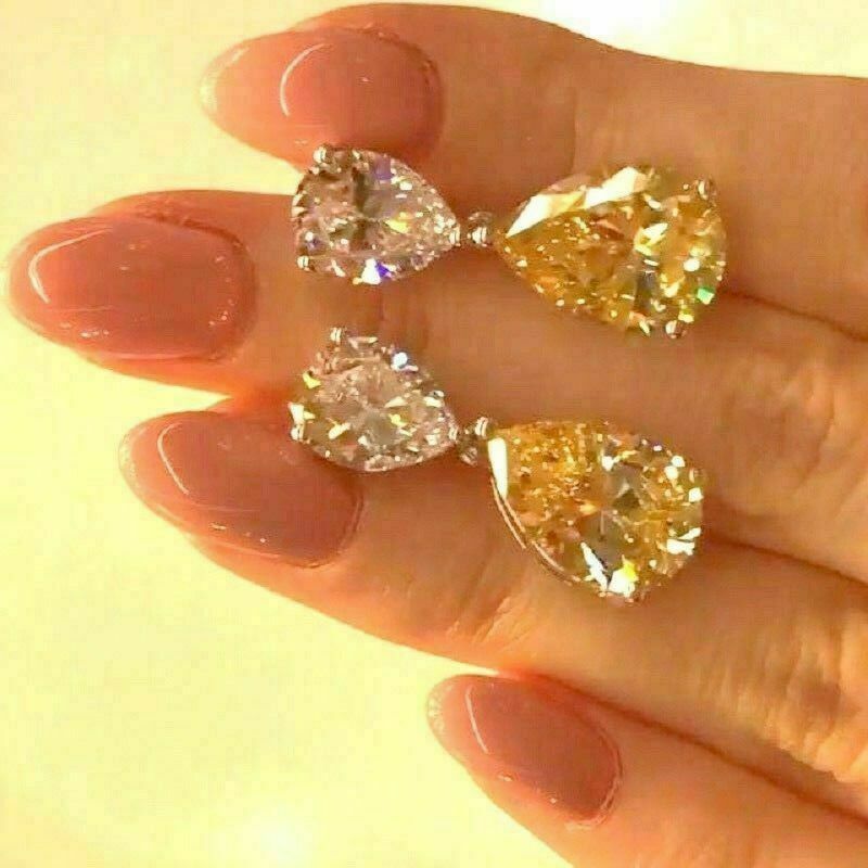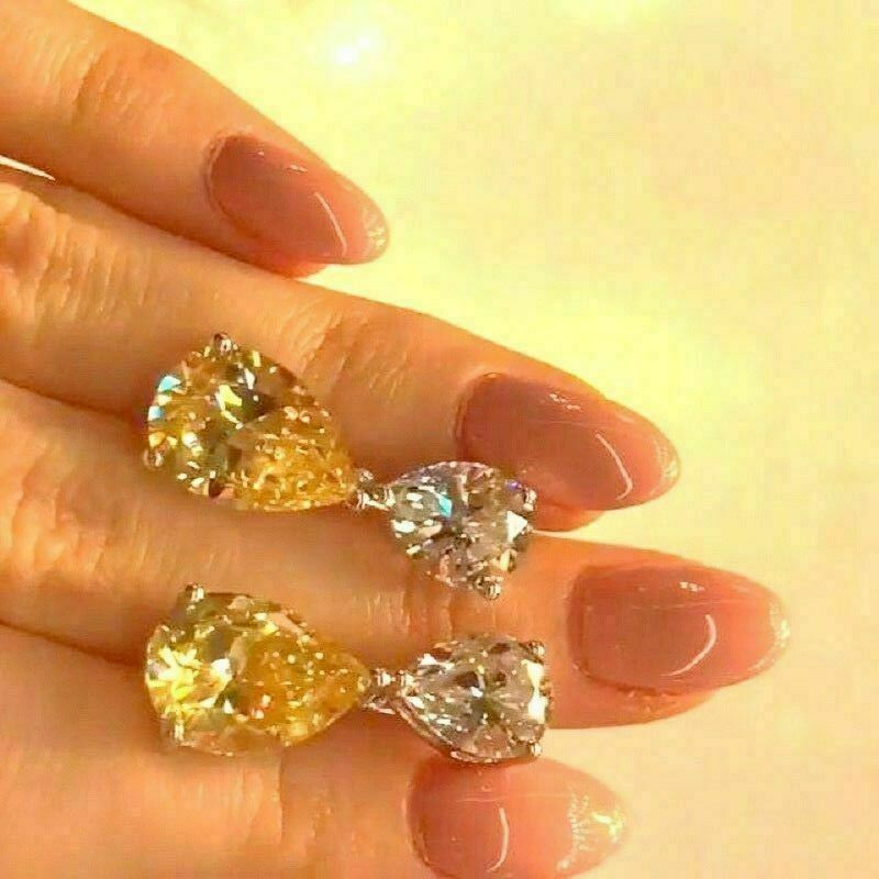 5Ct Pear Cut Yellow Critine Diamond Drop/Dangle Earrings 14K White Gold Finish