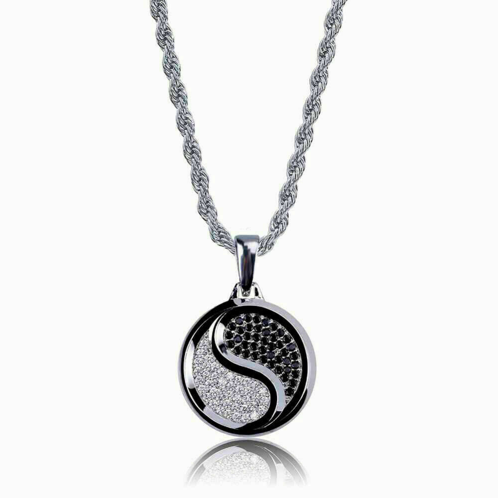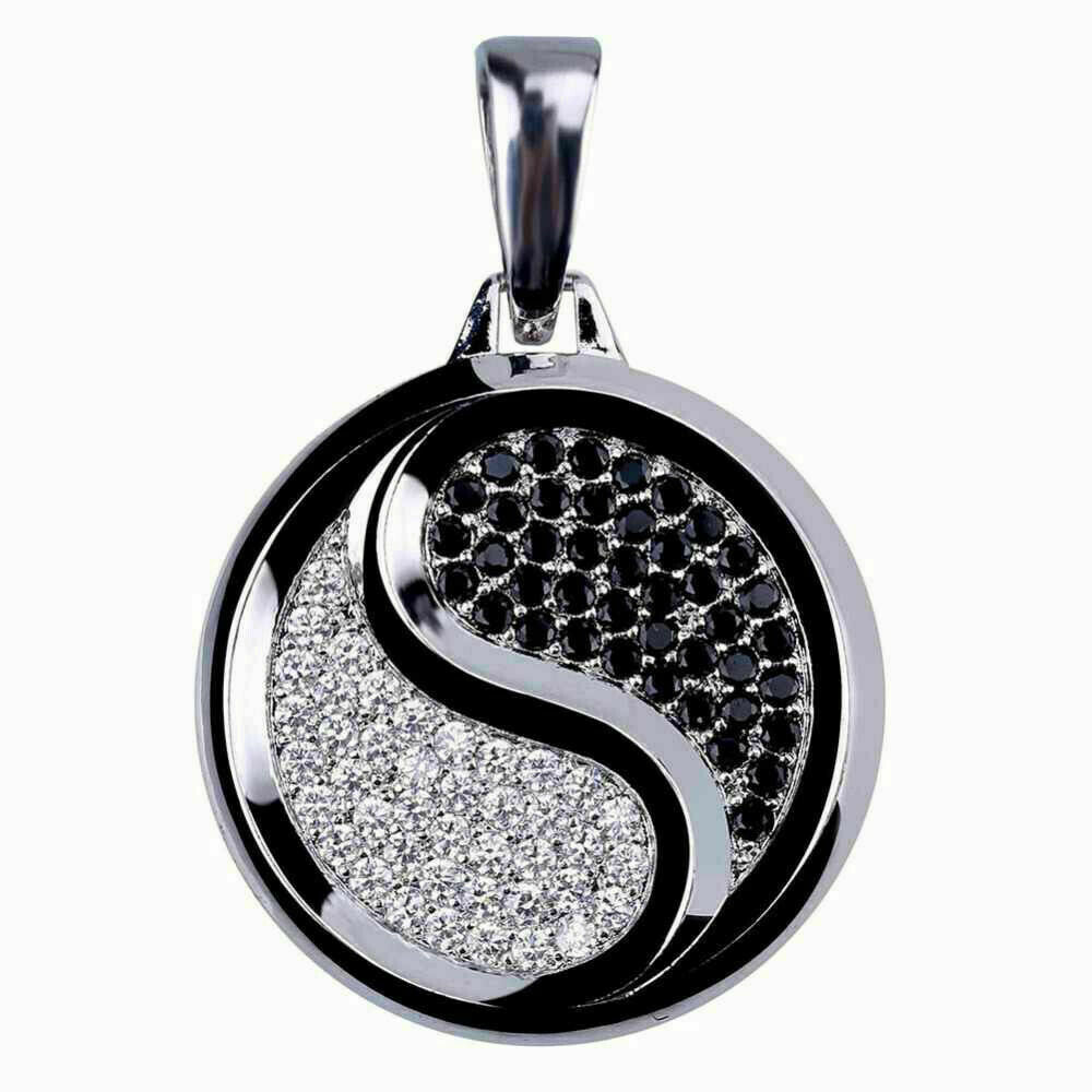 0.75Ct Round Cut Black & White Diamond pendant 14K White Gold finish free chain