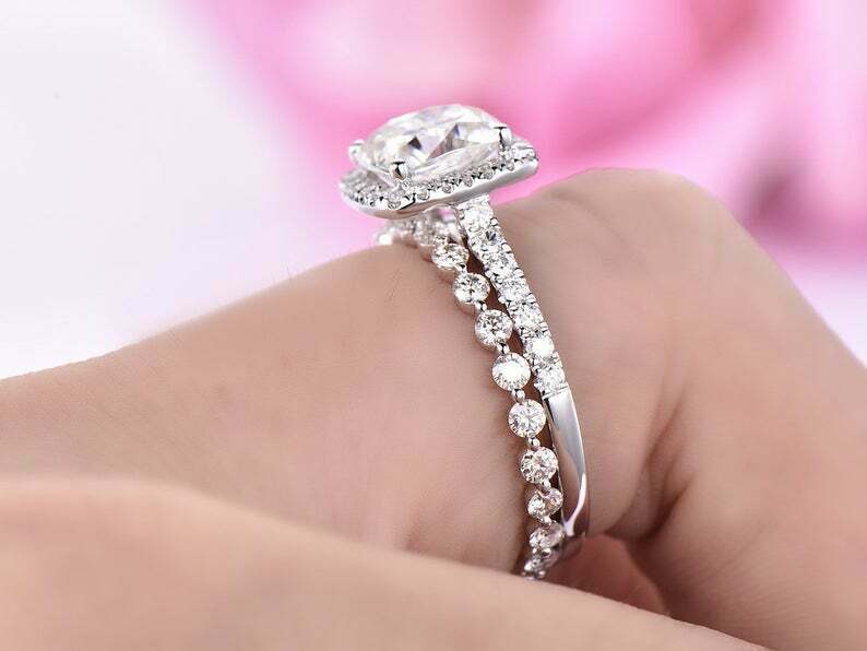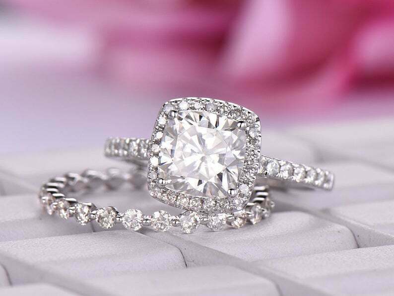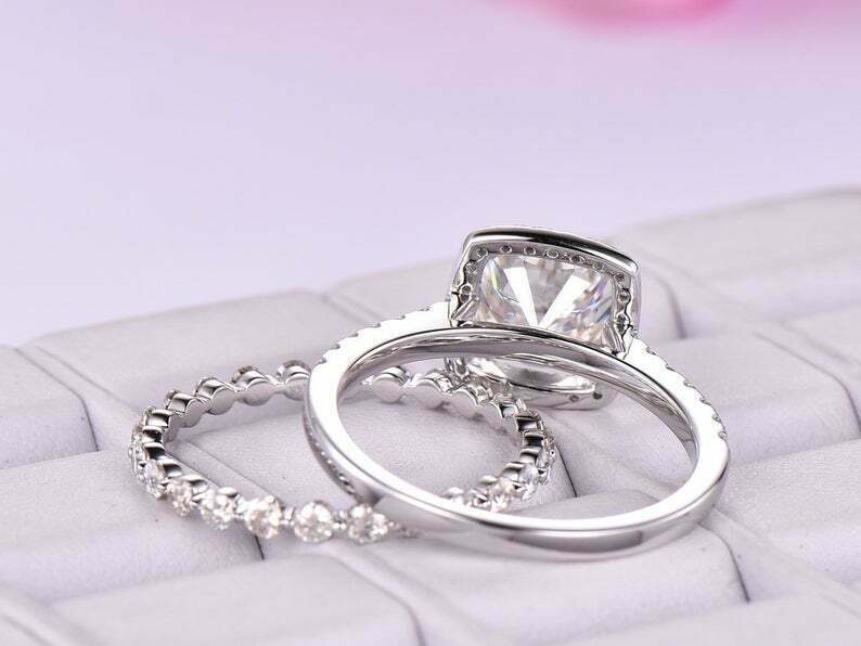 2.55Ct Cushion Cut VVS1 Diamond Bridal Set Engagement Ring 14K White Gold Finish